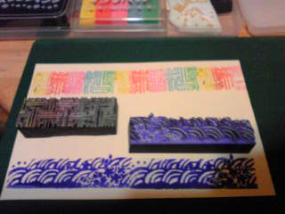 はんこの更新が、遅い夜ご飯の後に作った作品を載せていたりするので、私のはんこ写真は、とっても遅いです。。。いつも、覗いていったり、遊びに来てくれている方達に大変申し訳なく思いますが、多分こんな感じで、今夜も、出来る限り自分らしいものを、作ろうと思っています。なんか一番はかどる時間って、あるんですよね~( ̄ω ̄)そんな時に作るはんこが、自分にとって良かったり。でも、今回はどうかな?実は、ちょっとガタガタな線で、彫る時に自分で線を作って、彫った感じなので、出来はかなり悪いですが、自分用に、色を変えて、面白く使ってあげたいです。■枠、和柄(縦・横)こんな感じで、枠柄は初めて作ってみたけど、印面ボロボロ。しかも、ちょっと太すぎて可愛くない。(´・ω・`)反省です。今度は可愛いのが作りたい!!!