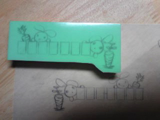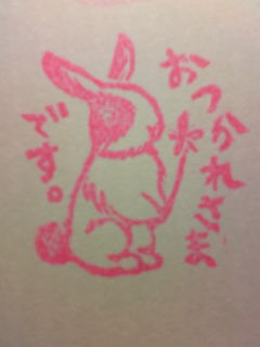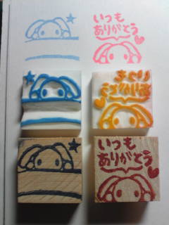 最近は、企画をやっているのにもかかわらず!!!ほったらかし気味のブログと消しゴムはんこ達・・・そして本日は、はんこ無しのコメント!あちゃー(ノД`)・すみませぬ。。。でも、ちゃんと消しゴムがある分は、縁の下で彫ったりしています。図案も、ここのところマイブームがリスさんやウサギさんはんこで、楽しく彫ってます♪(* ̄◇ ̄*)ウフ☆やっぱり★楽しく★彫る事が重要であって、体調悪化したり、切羽つまるのも、自己嫌悪に陥るのも生活していて、仕方のない事だと思うけれど、それを作品と一緒に載せちゃ悪かったなぁーと思いました。なので、ズットごめんなさいー。(*_*)かな?(誤まってばかりなブログ・・・焦笑)楽しくなる物作りをどんどんもっとしたい気分です♪::::::::::::::::::::::::::::::::::::::::::::::::::::::::::::::::::::::::::::::っとその後、彫りました。仕事を辞めてしまった友達に贈り物。チョットモゲたらごめん。ハンコもいらなかったらごめん。な作品ですが・・・ピンクのほるナビで♪香り良く!■ウサギさん(横)印面がボゾっと取れない事を祈って!・・・。↓持ち手つけて、今度送別会の時?渡します。::::::::::::::::::::::::::::::::::::::::::::::::::::::::::::::::::::::::::::::