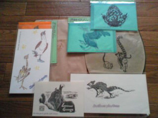 ++++++++++++++++++++++++++++++++++++++++本日2日目、初のスタンプカーニバルへ♪行って来ました!!!もーう、思ってたより会場も、広くて気になる商品めじろ押し☆今日は、知ってる、はんこお友達が居たらいいな~と思って、即席で、名刺っポイ物を作って朝12時前に到着。既に人は沢山入られていて、カンバン表示見ながら、オロオロと、目的の場所へ、行きました。++++++++++++++++++++++++++++++++++++++++今回、残念な事に、いつも良くして頂いている、チビひろさんが午前中来られるって、聞いたので急いで行ったんですが、入れ違いで、会えず。。。(「今帰った…」とおっしゃって、シードさんの男性のスタッフの方にまでも捜して貰っちゃって((;゚Д゚))大変お世話になってしまいました。すみません!!!)シードさんのブースにとどまり、そこでは、その後しばらくいつも使っている彫るなびを一通り見て、買い、お話したり、楽しく過ごさせて貰いました.._〆(゚▽゚*)♪とっても親切なスタッフさん達~わざわざ、大阪から来て下さって、大感謝でした~~~ 色々とご親切にありがとうございます!しかし、本社が、大阪にあるって事を知りビックリ。次の、9月頃?行われる物に行けるかどうかは、わかりませんが、今後も、シードさんの商品。特に、彫るなびには、お世話になる事でしょう~もちろん、NEWの薄目オレンジ色の彫るなびと、彫った事のない、水色と、みどり色のサイズ、を試しに購入。(=゚ω゚)ノ オレンジの色が可愛くて可愛くて。。。微笑。+++++++++++++++++++++++++++++++++++++++それから、一通り見て回りました (´・∀・`)ヘー☆ (´・∀・`)ヘー☆ (´・∀・`)ヘー☆ (´・∀・`)ヘー☆皆さん、ただのスタンプ作りをしていない!驚く程アイディア満載★ 企画いっぱい!とにかく作り手の思いたっぷりの作品は、本当にオリジナリティがあってとっても面白かった!!普段は、ブログを蔦って私は他の方の、消しゴムはんこを見ていますが、今回みたいに~沢山のブースを歩いて見て、色んな方達が居る中で、自分の好きなはんこのジャンルを手に取って見たり、色の確認をしたり、形の実験をさせて貰ったり、初めての事ばかりで、新鮮でした。ブースには、お客さんが集まって居る所、皆の前で、デモンストレーションっぽい事をしている所、体験させてくれる場所も、あって初対面なのに、教えてくれたり、笑わせてくれたり、出品者の方多達は、皆、優しかったです。普段は、女の子に出す、ドイリーな、お手紙用に♪と、レースものを見てましたが。はんこで、ここまで!!と思った方のがありました。両生類や、世界遺産の生き物の骨&本体を別々に作られていた方の、作品。☆松野由起子さんのブース☆大好きで、モリモリ買わせて貰いました!(`・ω・´)シャキーン 普段、ネット販売してないとの事、ここで出会えて嬉しかったです。はぁー~。来て良かった★(´ー`)ノ(珍獣や、世界的に貴重な動物のお話も為になったし、全部欲しい位、魅惑的なポストカードがたんまり。出品者さん (≧ω≦)ノ 知識があって凄かった~ いつか、赤い目のカエルも欲しかったし、出来るならばチョビ~っと、お友達になりたかったですが、商品と比べた、自分の寒い名刺が出せず、そのままモジモジしながら、笑顔で向きを変え、歩いて別の方向へ行ってしまいました。←ちょっとの勇気が出せず。だから、また会えたらな~。)++++++++++++++++++++++++++++++++++++++++本日は、2日目で、多分もっとっもっと魅力的な作品や商品は、1日目で、売れてしまったものが多かったと思います。それは、残念ですが、また来年のスタニカの楽しみにもなりました!++++++++++++++++++++++++++++++++++++++++ 以上、miho-pan スタニカ 記録でした!