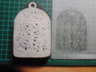 あら?最初に気がついたのは動く絵文字が使える事!顔文字あるんだー(←ってどんだけ古いかって、前のMacは貰った物で、今日調べたら8年前のPCらしいです。)ちょっとMac → Windows に変わった事が使い勝手の違いはあるものの、とっても嬉しい事です。これから私の手となり足となる(笑)事でしょう♪やっと画像もアップできる★一昨日猛烈に細かいものを彫りたくて7月頭から、いつか彫ってやろうと、描いていた図案です。■鳥かごです。(上記↑寺の鐘みたいです。。。笑)色をつけてみた。で、この時結構使わない様で、使う黒いインクがなかった事に気がついた!!!Σ(゜Д゜) またどっかで見つけなきゃ。