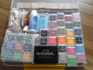 【ラッピング倶楽部】さん、やる事がとっても早いっ!朝、お見送りの時に玄関先に出た時に調度出くわしました~。一昨日注文した、インク(のみ)入りのダンボールハコが届いて、ちょっとビックリ!!!さっそく、インク入れに並べて置いてみました♪ルンルン♪♪なんだか私は、集めたくなる習性があるので、今日は見ているだけでもうご満悦です。(本当は、全96色欲しかったですが、今回は濃い目のインクのみで断念。)では、昨日のはんこを買ったばかりの、インクを使ってスケッチブックに捺してみました。ブラック(鳩)が無くって、今回購入しましたが、同時に買ったチャコールグレーのアートニックの色(カゴ)のなんとも言えぬ色がたまらなく好きです。こだわり派?には、もってこい!★そしてブロンズ(当初は黒ウサギでした・・・)は、上品な色です。普通の茶色って感じでは、全然無いですね。赤茶色の光沢が見える!!パーサマークで、捺していってみました。見えるかな?ウサギもですがあまり見えないかもしれない。って事で、順番に・・近づいて撮りました。■花枠(1)■鳩はんこの方は、ハトのお腹の方を失敗してズタボロに。黒彫るナビ!を扱うのは難しいです。■ウサギ(黒?今回はブロンズで!)ウサギの印面は、一応ベタにしました。黒と白のコントラストが好きなので、印面をベタにしました。(昔はフリーペーパーなど作って遊んだものです。)これで、色んな色のウサギになる事でしょう。最近は、色んな色のウサギちゃんがいますしね♪リアル動物を彫る時、毛並みを彫るのに、よく三角刀を使います。そんな時黒彫るナビ!は、消しゴムがモゲにくいので、サクサク三角刀で彫れで気持ちがいいです。では、また端切れ消しゴムで、枠を作って行きたいです。::::::::::::::::::::::::::::::::::::::::::::::::::::::::そろそろ、便りを書いていかないといけないと思っています。私にお手紙下さった方・・・もうしばらくお待ちを!( ・x・)筆無精だったり~体調変になったり色々で、すみませーん。