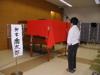 きょう(10/08)は、明星大学青梅校舎の学園祭で開催された柳家喬太郎独演会に奥さんと行ってきました。明星大学には初めて行きましたが飯能市の自宅から車で30分でした。場所は環境の良い所でした。会場は会議室。テーブルを組み合わせて設営した高座はかなり見上げる位置でした。その高座に上った喬太郎師匠は頭を斜めに曲げないと天井にぶつかりそうでした。師匠の目線からは「見下ろす」という感じです。私たち夫婦は前から3列目でしたが、かなり「見上げる」姿勢でした。しかし、中入りの時に、最後尾の席に腰掛けてみたら、会場が平面なのでその位置からは、最前列のお客さんの頭の上に「高座の座布団」が見える丁度良い角度でした。大学祭の行事の一つとして企画されているので入場料は徴収できないということで無料でした。それで、喬太郎師匠の噺をたっぷり二時間3席も聞けたのですからラッキーです。昨年の学園祭で呼んだのは林家彦いち師匠とか。今回が学園祭としては第2回とのこと。来場者は、学生以外の一般の人は父兄と友人が多く、地元の人が多いというわけではないので、大学祭での落語会は地域寄席には相当しないと思います。<今日の演目> 初天神 時そば (中入り) 文七元結