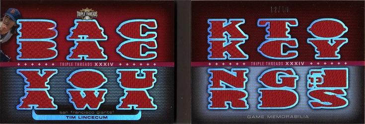 Lincecumファンの人に交換してもらったのですが、こちらからもLincecumのオート2枚(ダブりでしたが)を出すという大掛かりなトレードでした。双方満足でしたのでよかったです。