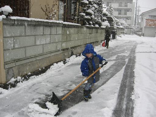 朝起きたら雪が積もっていました。子供達と一緒に雪かきです。画像は朝1回目です。私が1回雪かきした後に積もってきたところを子供達が雪かきしているので雪が少ないですが、そのまま降りやまず、午後2時に3回目の雪かきをしました。手袋とジャンバーがビチョビチョでヒーターの前で乾かしてます。まだやまないから夕方もう1回かな。我が家の雪かきグッズ
