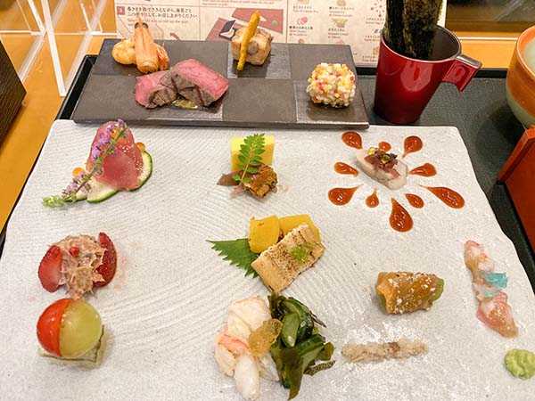 別の日には、彩道という高級和食レストランが鬼滅の刃コラボで「藤の花お食事処」としてオープンしたレストランへ行きました。