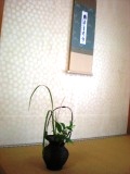 その間に、自ら水屋に入られて、床を掛け、茶室の建物を一回りして、野の花を集め、籠に入れてくださいました。