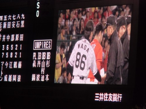 今日はシーズン最終戦。しかも相手は4位広島で、3位の阪神は勝てばCSが決定。負ければ広島の最終戦の勝敗によって3位か4位が決まるというなんともいえない試合で、且つ、関本選手の引退試合。<今季で退任する和田監督>先発は14勝の藤浪投手、広島は男気の黒田投手。<藤浪投手VS打者黒田>試合は情けない事に一方的な試合で6-0で負けてる状態の8回裏、2死1塁で代打、関本残念ながら現役シーズン最後の打席はピッチャーゴロでした。9回表はサードの守備に!<9回ゴメス これが最後か???<これも9回マートン これが最後??ライト前ヒット!>大事な試合をあっさりと負けてしまいましたシーズン終了の挨拶和田監督からのコメントはありませんでした。そして関本選手の引退セレモニー<最後まで見届けてくれる心温かい広島ファン>広島の新井選手より花束場内一周そして胴上げ19年間タイガース一筋御疲れさまでした!そしてありがとうございました!タイガースは70勝71敗と負越してペナントレースを終了。勝率5割を切ってCSというのも虫がいいので、来シーズン新監督の下、頑張って欲しいです!という事で今年も御疲れさまでした
