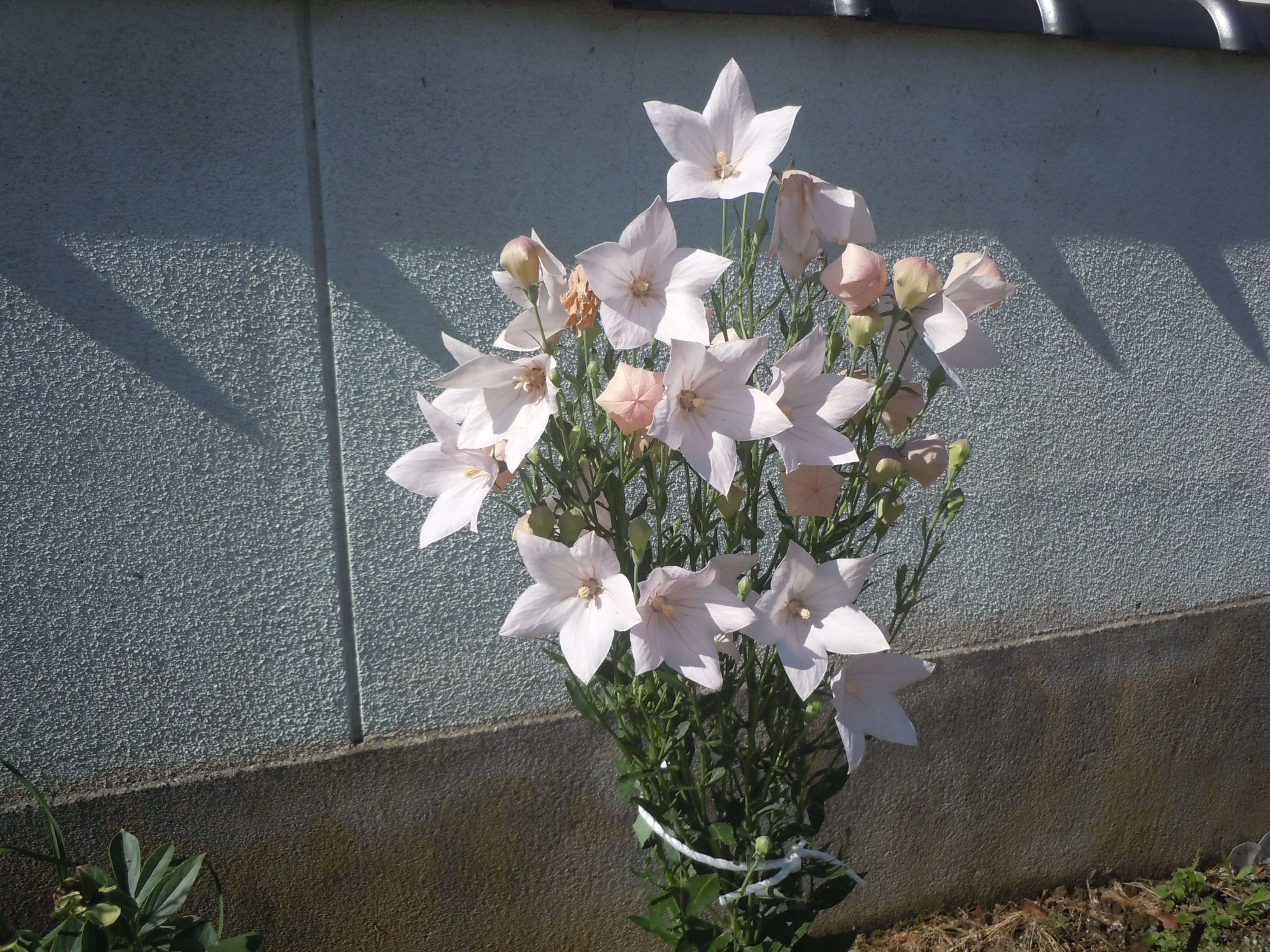 どういうわけか淡いピンクの桔梗で紙風船のようなつぼみがたくさんできていたのですが