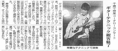 カムバディでも押してきました、押尾コータローさんのコンサートが大盛況のうちに終了しました。馴染みのある曲を、ギターテクニックで披露!!新聞にも掲載される人気ぶりでした。また、北海道でコンサートしないかなぁ?