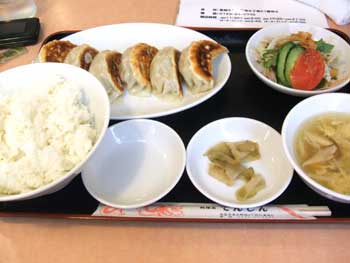 念願のてんしんさんにとうとう行ってきました~^^.しばらくご無沙汰していたので、やっぱり「ギョウザ定食」で味を思い出さないと…と、お腹を空かしてお昼丁度に行ってみると、駐車場が満車!! 混んでる~~~^^やっぱりランチも人気です!!ちょっと時間を潰して、30分後に伺いました。そして注文はやっぱり「ギョウザ定食」!!来ました~~!!いい香りです^^. ささっと写真をとり、早速食べ始めると…この味~~~!! 美味しい~~!! 皮はほんのりもっちりしていて、焼き面が香ばしく、一口食べると、口の中で肉汁がジュワァ~~と(^_^)酢と醤油で美味しく頂きました。しかもこのボリュームで値段も780円と安い!!もちろん完食!!大満足でした~~。こんどは「からあげ…とんそく…えびちり…」ん~~~迷います。これが取材か!!と怒る方もいるかもしれませんが…プロではないのですみません。また、てんしんさん含め色々なお店の感想書いて行きますので、来てほしいお店がございましたらご連絡ください^^