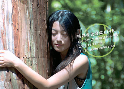 いよいよ明日ですよ^_^/信州を拠点に活動されている美咲/シンガーソングライターの札幌でのはじめての単独コンサートです。生命から湧き起こる、やさしく、そして力強い歌声を存分にご堪能ください。□期日2006年11月14日(火)□場所 札幌市 時計台ホール http://www15.ocn.ne.jp/ ̄tokeidai/index.html □時間 開場 18:15 開演 19:00 □定員 140名□料金 前売り 一般2200円 高校生以下1500円 当日 一般2500円 高校生以下2000円□主催 美咲ライブin北海道 実行委員会□後援 AIR-G' エフエム北海道□協力 teamWISH 他□お問い合わせ先●美咲ライヴin北海道 実行委員会 代表 広川憲吾/Life Coaching(コーチング)Handy : 090-2814-4310FAX:020-4669-6656 E-Mail : misakilive@yahoo.co.jp美咲より札幌のみなさんへ-今年の5月・札幌で歌わせていただきました。伊勢で出合った中村文昭さんという方が企画されたイベントでのプチライブでした。そこにいらしていたお客さんのおひとりが「コンサートなんて開催したことないのですが…是非、美咲さんの単独コンサートを企画したいです。」・・・とのありがたいお言葉。そして【美咲@光合成LIVE SAPPORO in 時計台ホール】が実現します。森の木々や花々が太陽の光を受け酸素を出しすべてを潤すようにみなさんに癒しと活力をもたらす歌を届けたい。皆さんといっしょに最高に素敵な時間を分かち合いたいと思います。 美咲/シンガーソングライター皆さん是非足を運んでみてください。