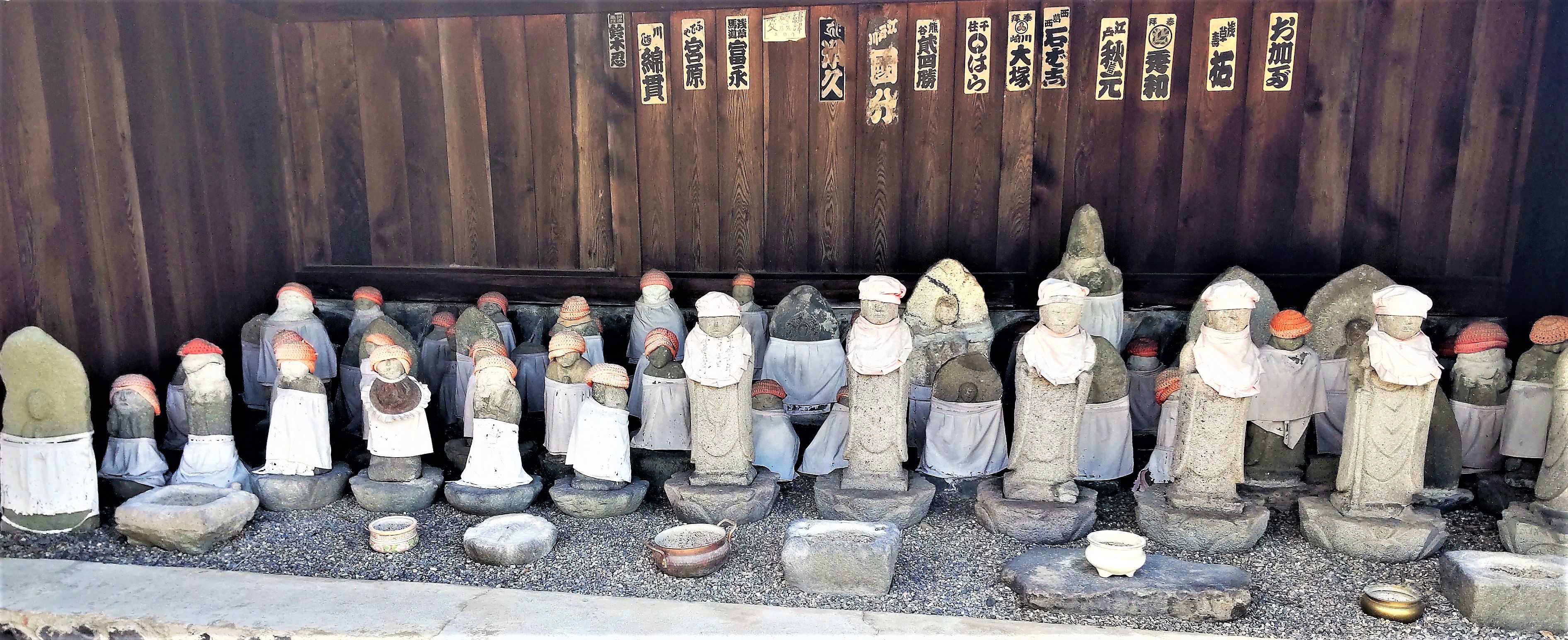 駐車場わきに並んでいた、可愛いお地蔵さんたちに見送られて、奈良井宿を後にしました。