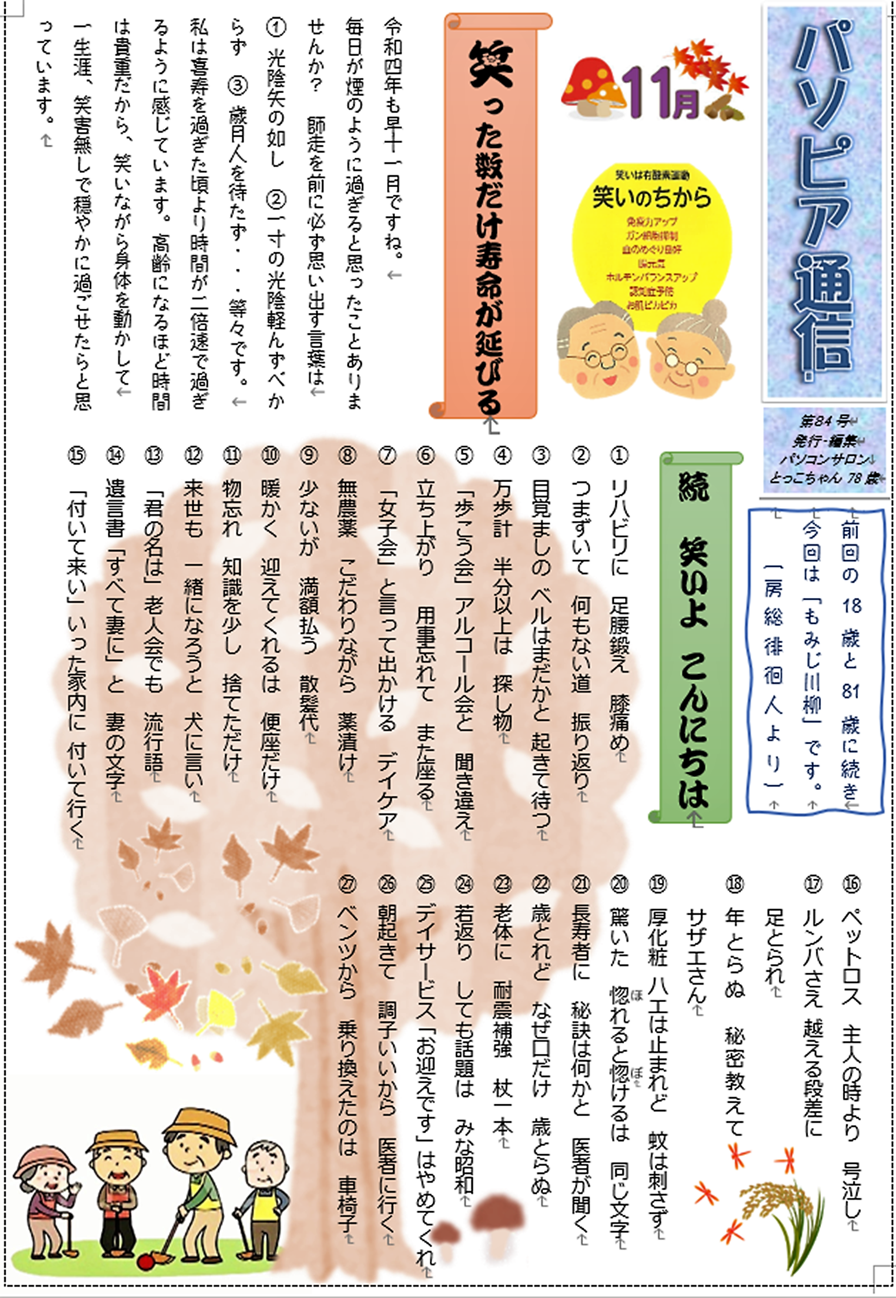 前回の18歳と81歳に続き、今回は「もみじ川柳」です。(房総徘徊人より)