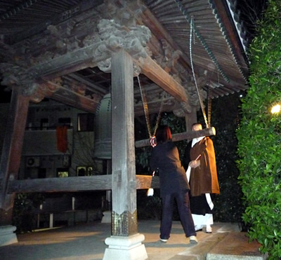 ここ数年、大晦日は紅白が終わった頃に家を出て、近所のお寺に鐘を突きに行ってます。鐘をつきたいたくさんの人が並ぶので、108回よりも多いのか、少ないのか、よくわかりませんが、ゴーン といい音で突けると、なんだか気持ちいいんですよ。で、その後、これも近所にある大きな神社、「穴八幡宮」にお参りして、0:00から行われている餅つきの餅を配ってくれるので、それを食べつつ帰ってくる・・・というのが家族みんなの習慣です。