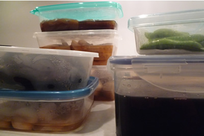 おせちって、作るのはそうでもないし、楽しいからいいのだけれど、別々に煮た煮物や、黒豆などなどは、勿論別々の保存容器に入れて冷蔵庫に入れておくので、お皿に並べるときに、それをまた全部出して全部冷蔵庫に片付けて・・・・・っていうのが、結構大変なんですよね。他にも、お雑煮用に酒と塩を振った鶏肉や、固ゆでにした小松菜、甘辛く煮た鶏のお団子、松前漬けに数の子などなど・・・・冷蔵庫は保存容器だらけで~す。