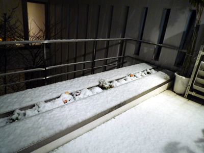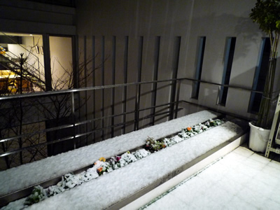 今年初めての雪。19時ごろまではミゾレだったけれど、もう、こんなです。写真は21時頃です。紙ふぶきみたいな雪です。ちなみに、ここは東京都新宿区です。家にいる分にはすごく嬉しくて、しょっちゅう外を見ていますが、たくさん積もったら、明日びしょびしょなんだよな~凍ってるよりはいいけれどね。凍結したら、一人では歩けません。(本当です)