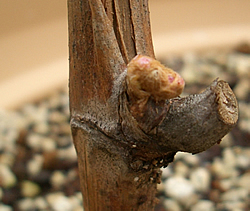 この日の日記で、「シャトー・メルシャンから高級ワイン『桔梗が原メルロ・シグネチャー』を剪定した枝を頂いたので、挿し木してみました。」と書きましたが、今まで変化が何もなく、生きているのかしら・・・と、かなり心配していたのですが、昨日 よ~く 見たら、芽のところに変化がありました! がんばれ~ 全国から注目されているサイトが大集合!日記・ブログ人気急上昇ランキング