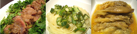 濱屋さんの活魚は、美味しい!と大評判。 この季節の濱屋さんのイチオシ「活きハモ」を色々とお料理して、堪能しました。「活き」とはいえ、朝丁寧に骨切りしたものをその日のうちに出荷、翌朝には手元に届くので、調理に困ることはありませんし、本当に丁寧に骨切りしてあって、まったく骨を気にせずに楽しめます。何よりも一番びっくりしたのは、失礼ながら、ハモがと~っても美味しかったこと!!だって、今まで、京都で食べても、東京の和食屋さんで食べても・・・・。「ハモって淡白よね。骨っぽいしね。」って思っていたのですが、こんなに味が濃厚で、ふんわり美味しいと思いませんでした。ハモを料理するのも触るのも初めてだったので、悩みましたが、どの調理法もとっても美味しかったです。「何作ろうかな~」とアレコレ考えているのがとっても楽しいんですよね。今回、「ワインとの相性を探る」のが課題だったのですが、料理考えて、作って、写真撮って、ワインとあわせてみて・・・・とやっていくので、長時間のハモコースになってしまいましたが、主人も撮影に協力してくれたし、何よりも美味しかったので、かなり楽しかったです。-----------------------------------------------------------------肝 塩コショウして、ごま油を数滴かけて-----------------------------------------------------------------生で食べられるの??って、ちょっと疑いつつも、口に入れたら、フレッシュフォアグラのように、とろーり濃厚な美味しさで、もっと食べたい!っていう感じでした。でも、火を通して、鍋でも食べたかったので、ガマン、ガマン。 ★サンセールの赤を合わせたのですが、ごま油の風味も香ばしくなり過ぎず、肝の風味も消さず、うまく橋渡ししてくれました。-----------------------------------------------------------------ハモシャブ----------------------------------------------------------------- 昆布をつけておいた鍋に酒とダシとり用の袋に入れたハモの骨少しを水から沸かしてダシをとります。ポン酢などで食べるので、ほんの~りダシに塩で味をつけます。 シャブシャブ用にとっておいた「肝」と「卵」もあまり経験した事のない美味しさ。ハモシャブの後の雑炊がまた、すごく美味しいのです。 ★スペインのロゼワインとあわせたのですが、ロゼの果実味が、ポン酢の強い味を抑えて、逆にハモの旨味とポン酢のダシの旨味をひきたててくれ、相性バツグンでした。-----------------------------------------------------------------湯引きハモのサラダ仕立て-----------------------------------------------------------------湯引き(茹でた後水に晒さずザルかペーパーに揚げて冷ます)にして、オリーブオイルと塩とピンクペッパーとフレッシュ・ディルでサラダ仕立てにしました。ハモシャブ用の鍋で湯引きを作れば、ハモシャブのスープも更に美味しくなりますしね♪フレッシュ・ディルとピンクペッパーがポイント!★アントル・ドゥ・メールの白と合わせたのですが、ハモの繊細な味を消さずに、甘味や旨味を上手に引き出してくれます。-----------------------------------------------------------------湯引きハモとキュウリのみがらし味噌和え----------------------------------------------------------------- 浜屋さん特製の「みがらし味噌」がとっても美味!! ★スペインのロゼワインとあわせたのですが、ハモの甘味とロゼの果実味、みがらし味噌の酸味・辛味のある複雑な味わいが合わさって、味に深~い奥行きが生まれました。-----------------------------------------------------------------酒塩焼き-----------------------------------------------------------------日本酒に塩を溶かして、ハモを20分くらい漬けておいて焼きました。表面は引き締まり、中身はふわっと・・・・表面にハモの脂がじんわりにじみ出てきて、淡白なようで濃厚な美味しさが楽しめます。 ★ボルドーのアントル・ドゥ・メールの白をあわせたのですが、白ワインの酸味と果実味が複雑味を与えてくれ、さらにもう一口食べたくなる♪そんな組み合わせでした。-----------------------------------------------------------------から揚げ-----------------------------------------------------------------ハモに、塩と酒で下味をつけてからクッキングペーパーで水分を拭き取り、ハモの骨切りの間にもしっかり片栗粉をまぶして、2度揚げしました。 ハモのから揚げってこんなに美味しいんだ~っ!とびっくり。フワッとジューシーな食感が楽しめ、後を引く濃厚な旨味が強調されてました。 ★スペインのロゼワインとあわせたのですが、香ばしさに冷やしたロゼが絶妙で、また濃厚なのに、繊細な味のハモの美味しさを消さずに旨味を引き立ててくれます。-----------------------------------------------------------------ハモのムニエル フレッシュレモンソース-----------------------------------------------------------------ハモの美味しさを生かせる料理で、何か無いかしら・・・と思って、作ってみたのですが、これが大成功でした。フレッシュレモンのソースとも相性バッチリ。 ハモを取り出したら、フライパンにレモンの搾り汁
