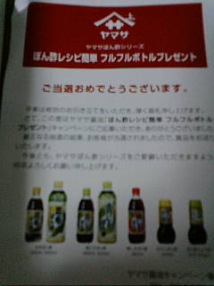 今年はよく懸賞に当たっています。ビールのセットが3回くらいとペットフードが1回。ちなみに私はペット飼っていませんけどね(^^ゞ普段ほとんど当たらない私にとってはこれでもかなりスゴイ方なんです。今回当選したのはヤマサさんからフルフルボトルポン酢と他の調味料でドレッシングやタレなんかが作れそうなので使うのが楽しみです♪ヤマサさんありがとうございました今日はまたイオンに出かけたのですが浦和レッズの選手とすれ違いラッキー今日は韓国のりを目当てで行ったのに浮かれていたのか買ってくるのを忘れました・・何しに行ったんだ私は【韓国食品・韓国のり】 サジョのりパリパリとした食感の韓国のり!海苔巻きに最適!韓国のり■韓国食品■/韓国海苔/海苔巻き用のり/のりまき用のりこれぞ本場の韓国のり大韓商社の韓国味付け全形のり【26%OFF!】お茶漬けチャンジャ韓国のり付き