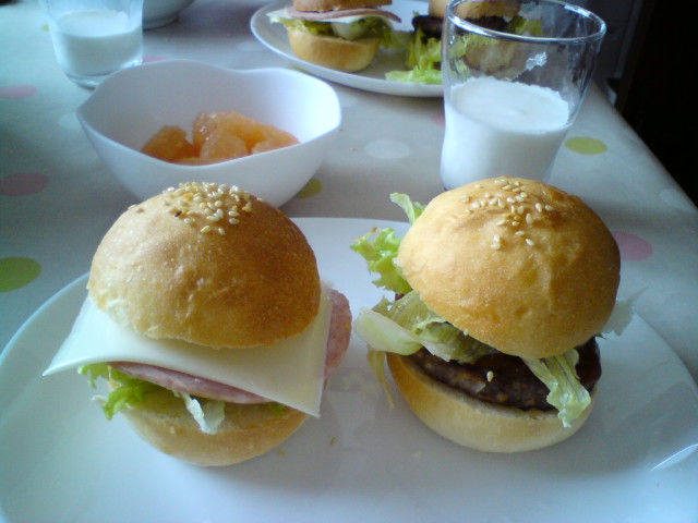 昨日も今日も旦那が飲み会で1人夜を過ごしています さて、夕飯は何食べようかな~ 今日の朝食は旦那もお休みで、昨日バーガーバンズを焼いたので『ハンバーガー』にしましたパスシステムのビーフパテを挟んだバージョンと、ビアソーセージとチーズを挟んだ2種類を作りましたこれが、結構美味しくて大好評もう、マックとか行かなくても良いかな~なんて (モスのラー油バーガーがかなり気になりますが・・・)また作ろうっと そして、4D検診に行ってきました4Dとは立体の画像に動画をつけたもので、まだ段階的には早かったけど立体の赤ちゃんの画像を観ることができました女の子みたいです その後、あまりにも暑いので31アイスに行ってきました今ならダブルがトリプルになるんですよね6月に新発売のメロンオーレとバナナオーレの『オーレ&オーレ』と『ピーチメルバ』『ハワイアンクランチ』のアイスにしました超おいしかった~ では、先日の夕食だけちょこっとご紹介 『鮭のちゃんちゃん焼き』『里芋もち』『冷奴』『ほうれん草と油揚げの味噌汁』です食事も健康志向でいきたいところですね では~