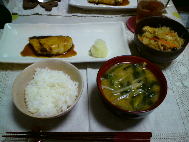 また、新しい一週間が始まってしまいましたね週末が過ぎるのが早い早いっっ 金曜日は仕事でヘトヘトでしたが、全体的にヘルシーな夕飯にしてみました『鰤の照り焼き』『切干大根の煮物』『もやしとほうれん草のお味噌汁』です 『切干大根の煮物』は母に電話で作り方を聞いて作ったら、実家で食べる味に近いものが完成し満足のいく出来でした 土曜日は旦那も仕事だったので、昼間少し出掛けてから体調がイマイチだったのでずっと家で寝てました最近の土日は天気が悪く、本当に布団が干せない 夜は旦那がケーキを買ってきてくれましたらぽっぽの『たっぷり3種ベリーとおいもクリームのパイ』です わ~い苺とラズベリーとブルーベリーの甘酸っぱさとお芋の優しい甘さがとっても美味しかったです夕飯は『鶏の甘辛マヨ』と『切干大根の煮物(前日の残り)』『お赤飯』『お味噌汁』です そして、日曜日旦那の実家に行ってきましたマックを買って行き、写真撮り忘れましたが『ハワイアンバーガー』食べましたって言っても3口くらいもらっただけですが、とっても美味しかった~ 夜は、義母が作った『おいなりさん』と『卵焼き』を貰ってきたのですが夕飯には足りないということで合うか合わないかは置いておいて・・・旦那が『焦がし白菜のクリームシチュー』を作ってくれました(その間、私はアイロン掛け) これがすごい美味しくて、煮込まれた白菜のほかにオリーブオイルで焼いた白菜をのせるんです 甘みがアップしてうまっ新しい白菜の食べ方でした では、今日はこのへんで