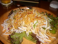 おばあちゃんちに行った時、 いつも行く居酒屋さんが盆休みでその近所の本日開店という名前のお店に入った。父さんはちょっと乗り気じゃなかったけど 鰹のたたき 地鶏のたたき 角切りステーキ 豚の角煮 そば飯 たこチーズボール もやしとゴーヤの炒め物 本日開店サラダ この店、当たりだったよおばあちゃんは、生まれて初めてゴーヤを食べたんだけどここのゴーヤ、全然苦くなくて、美味しいって1人で半分食べてたいやぁ!やっぱり下ごしらえで苦味はなくなるんだね。この前、すず@ふじこ ちゃんが、苦味の出ない方法を教えてくれたけど絶対にやってみないとと改めて思った。 すずちゃんが教えてくれたのは ゴーヤの苦味をとるものは・・・「小麦粉・豚肉・卵・豆腐」です!ということで、お好み焼きに入れてみた。苦くなくてもの足りなかった(笑)あとゴーヤの苦味をとる方法。(1)ごく薄く切る(2)塩もみする(3)水でさらすです。このままポン酢でたべてもいけますが・・・チャンプルーにする時に、さらに、豚肉も卵も豆腐も多めで炒める(私は味付けにオイスターソース使う)と、かなり苦味薄れます。私に作ったかき揚げは1センチぐらいあったし、苦いわけだ。水でさらしたりもしなかった。そりゃあ苦いわな このお店、どの料理も美味しかったし 安いし、気にいった