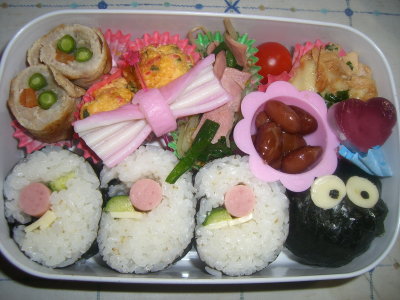 本日、三回目の日記そういえば、着付け教室、12回終了しました 一人で着ようとすると帯の段階で時間が掛かるかもしれないけどとりあえず着物は着れる様になったかな。次も同じメンバーで上の段階へと進む事に振袖や留袖と難しいから心配だけどみんな仲良しだから教えあえるし大丈夫かな何はともあれ、浴衣はちゃんと着付けしてやれるようになったから来年の夏は楽しみかもしかし、今年の夏も嫌がって一度しか浴衣を着なかったし彼氏が出来たら着てもいいなんてありえないことを言っていたそんなRISAの今日の弁当は ピーマンとしいたけの肉詰め、焼きスパ(しいたけ、ピーマン、にんじん、ソーセージ) 鯖のチーズ焼き、ポテトサラダ、人参グラッセ、ウインナーのうずら目玉 プチトマト、スィートポテト おにぎり(のりたま、ゆかり、梅わかめ、海苔、チーズ、ハム)スィートポテト、いっぱい作ったけど後、残り1個、父さんとRISAが競い合って食べるので私の口には入ってない。RISAの弁当用にハートのスィートポテトを今日は夕方、新しい友達ともんじゃ焼きを食べに行って来るよ当然、もれなくRISAもついてくる