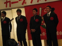 年に一回の近畿カープ後援会の懇親会の日今年は、おばあちゃんも行くのでラマダホテルで待ち合わせお天気はあいにくの雨RISAは、女らしいドレスを着てるのでちゃんとカメラも持参年賀状用の写真に父さんがホテルまで送ってくれる事になりに乗り込む。ちょっと走った頃、あっ!携帯忘れた諦めろ!と、父さんと口を揃える。私は、充電したもんねそうそう!カメラのSDカード、ちょっと消しておかなきゃとカメラの電源を入れた瞬間電池の容量がありません。と電源が切れた。まだホテルに着いて無いし、写真撮ってないしホテルで会ったおばあちゃんに、写真撮れないと言うとまあそれはがっかりしてた何故か携帯で料理撮るのも忘れてた最後の手段、人のカメラにSDカードを入れさせてもらって撮った 大好きなお兄ちゃんといつも一緒 午後からは、風も強く、雨もひどかった。RISAは、2次会に行きたかったみたいだっただけど 荷物は重いし、いっぱい歩く場所なので雨に濡れるのも嫌で却下!すねたRISAの顔が風船みたいにふくれてたでもその後、家に帰ってなんだかしんどかったみたいでやっぱり行かんかって正解やったなあやっぱり、親の言う事は聞いたほうが身のためやん