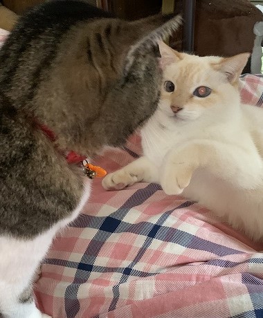 今日18日(土)は雪のち晴れ、最高気温1.8度、最低気温-4.1度でした。今日と明日は共通テストです。山大工学部が会場になっているので米沢の朝晩は送迎の車で混みそうです。まあ、出かける予定はないのですが…とにかく寒い、出かけようという気分になりません。家で過ごしました。 今日のニャンズ ナナちゃんに近づくカリンさまです。 今日は何事なくのニャンズでした。いつも仲良くして欲しいものです。
