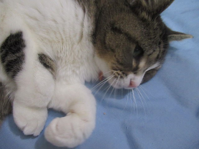 今日5日(日)は、二十四節気のひとつ「小寒(しょうかん)」です。小寒とは「寒さがまだ小さい」という意味です。小寒の初日を「寒の入り」というように、冬の冷え込みが徐々に厳しくなっていきます。今日は曇りでしたが、夜になってから少し雪が降ってきました。最高気温0.8度、最低気温-5.3度とかなり寒かったです。東京都心でも今シーズン初めて最低気温が0度を下回る「冬日」となったそうです。長かった正月休みも今日で終わり、明日から通常モードですね。お月さまもこのところ見ていませんが、7日(火)が上弦、14日(火)には満月を迎えます。カリンさまの前足寝ているところを邪魔してしまいました。