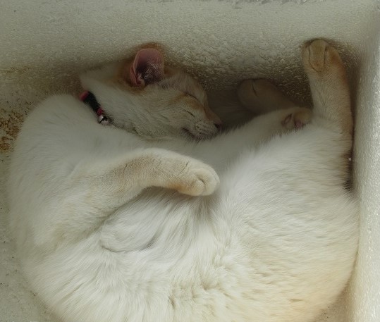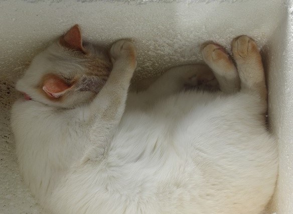 この発泡スチロールの箱がお気に入りで、気持ちよさそうに寝ています。