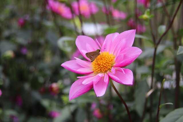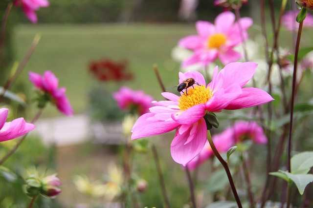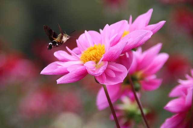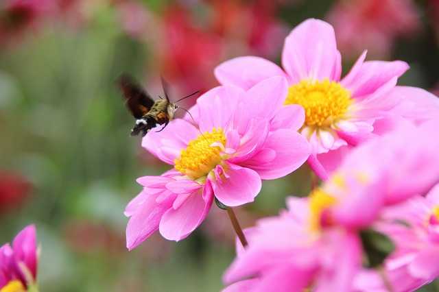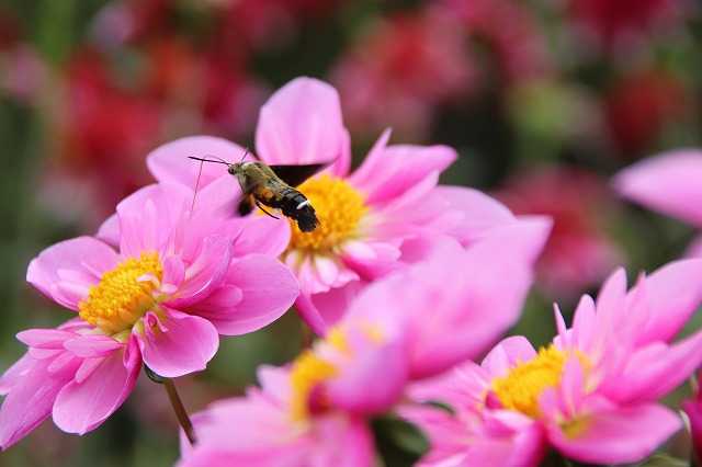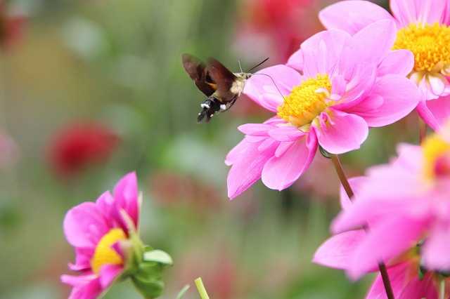 ホウジャクと出会いました。このダリアの一角にはたくさんのホウジャクが