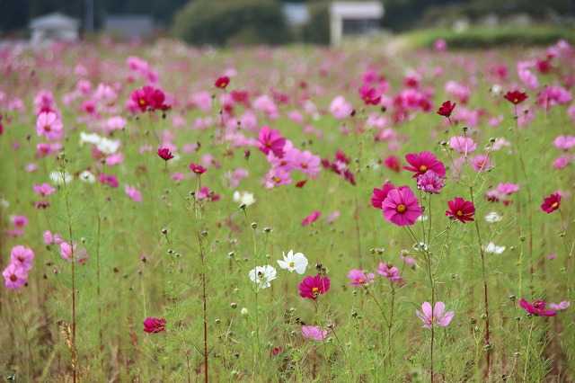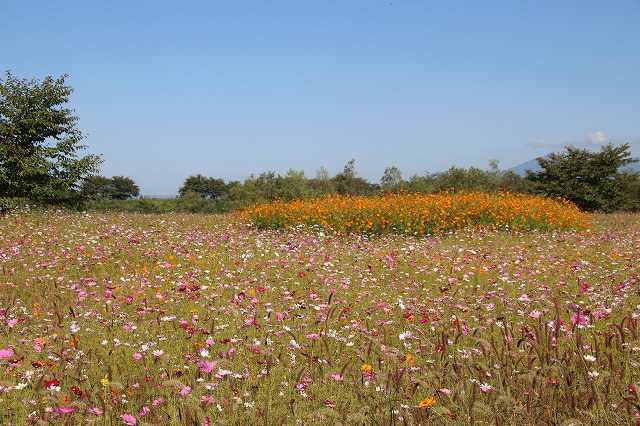今日17日(金)は晴れときどき曇り、最高気温22.8度、最低気温13.8度でした。20度を超えると暖かく感じられますね。明日は雨の予報ですが、気温は下がらないようです。 さて、好天に恵まれた15日のことです。ちょうどこの日は仕事が休みでした。コスモスを見るため、寒河江市に向かいました。月山道の駅寒河江チェリーランド裏の河川敷に、たくさんのコスモスを見ることができます。