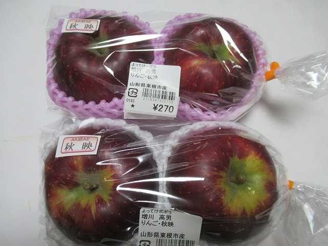 今日20日(月)は晴れのち曇り、最高気温18.0度、最低気温10.3度でした。20度以下だと、やはり寒く感じられます。明日はもっと気温が下がる予想です。 さて、寒河江市にコスモスを見に行ったとき、東根市の産直「よってけポポラ」まで足を伸ばしました。りんごといえば、朝日町の道の駅「りんごの森」へ行くのですが、今回は東根産のりんごを買ってきました。秋映(あきばえ)は色が黒っぽいのですぐわかります。長野「りんご3兄弟」の1つで、これはお気に入りで毎年購入しています。「陽光(ようこう)」は初めてかな。群馬県生まれのりんごです。甘みと酸味のバランスが取れていて、サッパリとした味わいでした。まだ桃も少しだけ店頭にありましたが、硬い桃のようでした。値段も良かったので買いませんでした。今年の桃活は、終了です。