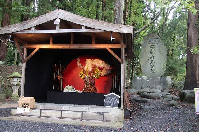 今日15日(水)は晴れ、最高気温23.4度、最低気温13.1度でした。昨日とは一転、暖かな秋晴れの日になりました。 さて、昨日のつづきです。今年の菊人形×フラワーアートは「江戸歌舞伎」でした。 神楽殿熊野大社拝殿