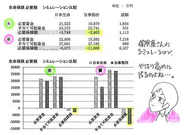 各社でまったく違う金額になりました。ものの10分程度で出る数字では・・。●顧問会員のTさん(30代) (相談:生活設計・マイホーム建築)家計の現状診断はすでに終えて、生命保険の清算も終えて・・、マイホーム取得のための環境整備中・・。そのT家の生命保険の必要額のお話・・です。夫 : 30代、会社員、年収400万円台妻 : 30代、会社員、年収100万円台就学前の子ども2人の4人家族。T家の死亡保障必要額は、いくらでしょうか?〇当事務所で算出した金額は、以下でした。 必要資金 手当可能資金 必要保障額夫 13,835万円 - 12,235万円 = 1,600万円妻 14,403万円 - 18,967万円 =△4,564万円夫の必要額は1,600万円で、妻は不要・・ということです。同じT家・・生命保険会社のホームページで、シミュレーション計算をしてみました。〇日本生命 必要資金 手当可能資金 必要保障額夫 13,343万円 - 14,195万円 = △852万円妻 14,325万円 - 19,082万円 =△4,757万円妻の分は・・近い金額です。え・・? 夫も不要? ???・・です。〇損保ジャパンDIY生命 必要資金 手当可能資金 必要保障額夫 10,545万円 - 11,734万円 =△1,189万円妻 300万円 - 660万円 = △360万円れれ・・? 夫はますますマイナスに。 妻の方の数字は何? 2度やったけど・・?どちらも不要!・・という結果にかかわらず、夫には500万円、妻には800万円の保障を勧める表示が現れました。 ・・?〇ライフネット生命保険 必要資金 手当可能資金 必要保障額夫 9,694万円 - 9,037万円 = 657万円妻 6,959万円 - 8,036万円 =△1,077万円試算結果にかかわらず、夫にも妻にも1,000万円の死亡保障を勧めています。( 医療保険と抱き合わせ・・で )どうせ高めの「必要額」が出るだろうから・・、各社のシミュレーションをおこなって、「算出額の70%程度でみればいいですよ。」・・のような目安を提示しようと思って作業をしましたが、目安なんて示しようがありません。ホントに各社・・バラバラです。結局・・結論は、「保険屋さんの試算結果は、全くあてにならない。」・・です。考えてみれば、そうですよね。素人がものの5分や10分で出せる・・簡易試算です。まともなわけがありません。ライフネット生命あたりは・・年齢や家族構成で目安の金額を2千万円とか3千万円とか・・と提示しています。保険料が安いからといっても、四角形の保険です。安易に加入してはいけません。Tさんのケースでは夫に必要額が出ましたが、妻の年収がもっと高い・・フルタイムの共稼ぎのケースでは、2人とも生命保険が不要!に・・だいたい・・なります。あ~あ、試算をやった時間がもたいなかったぁ。今日の武田FP●顧問会員のMさん(30代) (相談:生活設計・マイホーム建築)今日は、辛い作業・・でした。先日・・行なった、マイホームのプレゼンコンペの結果、Mさんご家族はT社さんを選択しました。5社によるプレゼンの結果、想定予算内は3社・・でした。3社の内の2社が安さで並んでいて・・、その内・・提案する断熱性や使用素材がMさんの心を捉えた・・T社さんに決定!で・・、私はいつもの辛い役割を・・。他の4社に、落選の電話連絡で平身低頭・・です。あとは、月曜日の契約段取り作業・・です。Mさんへ、当日の準備について・・。・印鑑・契約印紙代 15,000円T社さんへ、決定のお知らせ・・。もちろん大喜び!・・です。( 今日は、おいしいお酒を飲んでください )結局・・1番高いところとT社さんとの価格差が2,000万円! ・・になった、今回のプレゼンコンペでした。もうひとつ・・家が建つ、そんな価格差が当たり前のようにある、恐い世の中です。きちんと比較検討しましょう。人生最大の買い物・・です。《 消費者の方へ 》 保険には加入するな!借金はするな!経費は払うな!目を覚ませ! 「家計の常識を疑え!」参照。《 顧問会員希望の方へ 》 『身内』として厳しく真剣に支援。「顧問会員って何?」を熟読の上、申込⇒fpst@axel.ocn.ne.jp