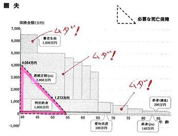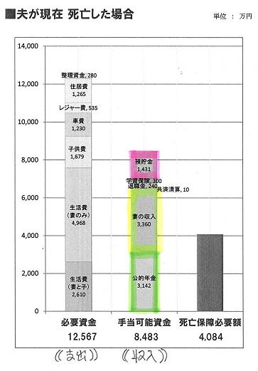 生命保険には入らない!・・工夫をしっかりした方が、生涯のお金が圧倒的に節約! ・・できます。なんと言っても・・『 生命保険加入 = お金を失うこと! 』・・だから。〇メール顧問会員のTさん(40代) (相談:ライフプランニング)昨日、現状診断が終了!しました。22ページの小冊子になりました。メール添付で送りました。しっかり読み込んで、理解してほしいと思います。 T家の概要 家族 : 夫40代 妻30代 小学生×2 仕事 : 夫:自営業 妻:自営手伝い 住居 : 夫の実家に同居一部を紹介します。T家の生命保険です。死亡保障の必要額を算出しました。以下で・・「必要額」の意味をしっかり理解してください。死亡保障必要額・・は、「 必要資金 - 手当可能資金 」 ・・です。これからの「生涯の支出」に対して、「生涯の収入」がいくらあるか?・・を見ます。収入が少なければ・・やむを得ません。しぶしぶ・・生命保険に加入します。 ※なぜ・・しぶしぶ? 「保険加入=お金を失うこと!」 ・・だからです。 (進んで加入してはいけない!)収入の方が多ければ、生命保険は不要!・・ということです。さあ! T家ではどうでしょう?上図より、夫の死亡保障は・・?4,000万円以上も必要です。支出よりも収入が少ないので、そうなります。・預貯金がもっとあれば・・・妻(配偶者)がもっと稼げれば・・・公的年金がもっと多ければ・・「必要額」は減る・・ということ、分かります・・よね?これら・・支出や収入は、それぞれの家族によって、まったく別の内容になります。なので、一律に・・3,000万円!などという加入のし方は意味がありません。一方・・妻が死んだ場合は?夫(配偶者)の稼ぎが大きいため、収入が支出を上回ります。なので、死亡保障は不要!・・ということです。今度は・・時間の経過で夫の必要額がどうなるか?・・を、見てみましょう。今から10年後には、支出がグンと減ります。(過ぎ去った期間の保障が不要になるから)それに対して収入は・・?「預貯金」がグンと増えています。結果・・、必要額はグンと減っています。妻の方は、現在も将来もまったく不要!・・です。妻が死んでも、夫(配偶者)の収入が大きいので、常に・・収入が支出を上回ります。T家で実際に加入している生命保険と、死亡保障の必要額とを比べてみましょう。赤い三角部分が必要額・・です。夫は、55歳時点でゼロになります。以後は生命保険は不要!・・ということです。生命保険を卒業!・・していいということ。できるだけ早く卒業できれば、貯蓄がどんどん増えます。保険料を払わなくて済むから・・当たり前!妻は、現在も将来も不要です。2人とも、大金をたれ流しています。今日の佐々木FP〇ヒアリングシート原稿 リニューアル・修整作業。〇顧問会員のHさん(40代) (相談:ライフプランニング)現状診断資料の作成作業。かなり・・間が空きましたが、再ヒアリングの回答がありました。今日から改めて着手!・・です。【 行列のできるFP事務所 】 資料作成の順番を待っている顧問会員の行列です。 お待たせしています。大変申しわけありません!1 Hさん(40代):現状診断 今日の作業。(12/13ヒア)2 Kさん(30代):シミュレーション 回答待ち。(4/4着)3 Mさん(40代):現状診断 回答待ち。(4/19着)4 Tさん(30代):現状診断 回答待ち。(5/20着)5 I さん(30代):現状診断 回答待ち。(7/7着)6 Hさん(40代):現状診断 回答待ち。(7/9ヒア)7 Oさん(30代):現状診断 7/13 シート到着。8 Sさん(30代):現状診断 7/24 シート到着。9 Nさん(30代):シミュレーション 7/25依頼到着。10 Kさん(40代):現状診断 8/16 シート到着。11 Oさん(30代):現状診断 8/18 シート到着。12 Kさん(50代):現状診断 8/19 シート到着。13 Mさん(50代):現状診断 8/22 シート到着。14 Yさん(30代):現状診断 8/29 シート到着。15 Tさん(30代):現状診断 9/5 シート到着。《 質問希望? 》 まずブログ右帯の記事を読んでください。よくある質問の答えがあります。(「家計の常識を疑え!」他)《 顧問会員希望? 》 「顧問会員って何?」で支援内容や当事務所との関係を確認の上、右記へ fpst@axel.ocn.ne.jp