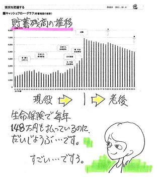 専業主婦に厚生年金の半分を?徹底的に節約!・・までしなくても、ぜいたくさえしなければ暮らしていける?気になるニュースを、各紙が報じています。厚生年金、専業主婦が半分受給...支払者とみなす 2011年9月29日(木)13:56 (読売新聞) 厚生労働省は29日、サラリーマンや公務員世帯の専業主婦が、夫が支払う厚生年金などの保険料の半分を払ったとみなし、夫が受け取る厚生年金などの受給額の半分を妻の基礎年金に上乗せする仕組みに改める方向で検討に入った。 同省は改革案を29日の社会保障審議会(厚労相の諮問機関)の年金部会に示し、2012年の通常国会に関連法案を提出する考えだ。 サラリーマンや公務員世帯の専業主婦は、保険料を支払わないのに基礎年金を受け取ることができる。この第3号被保険者制度には「専業主婦優遇だ」という批判がある。3号の保険料は年金加入者全体で負担しており、3号の夫の保険料だけでなく、共働きや単身者の分も主婦への年金の原資になっているからだ。政府・与党が6月に決めた社会保障・税一体改革成案でも見直しを求めている。 厚労省は見直しに向け、夫の保険料を増額したり、 ・・(ア)妻に保険料を求めたりする案や、 ・・(イ)妻の基礎年金を減額する案 ・・(ウ)を検討していた。しかし、理解を得るのは困難だとみてこうした案は見送る一方、保険料支払いと年金受給とを対応させる形をとるため、今回の改革を実施することにした。「専業主婦優遇」の批判に対処する案がいくつかありましたが、(ア、イ、ウ)どの案を選んでも、懸念は残ります。今回選んだ案は、新たな保険料負担が発生することもなく、年金受給額の夫婦合計額も変わりません。他のいくつかの方法よりは問題点が少なく、よりベターな選択かと思います。では・・今回の案での問題点は?懸念されることって、何でしょう?〇遺族年金の額が減る。 現在の制度では・・ 夫が亡くなった場合に、 専業主婦の妻は、 夫の厚生年金の額の 4分の3が受け取れます。 今回の案の通りになれば、 夫が亡くなって・・ 4分の3を受け取れるはずが、 2分の1になってしまいそうです。 生命保険の必要額が増えます。 うれしいのは保険屋さん?・・かも。 (^^ゞ〇熟年離婚が増える? 現行制度での専業主婦の妻は、 夫に相当の不満を抱えていて 我慢の限界であったとしても、 老後生活の経済的な裏づけが 無いために、ズルズル・・と いっしょにいる・・というケースが かなりあるかと思います。 それが・・今回の案の通りに 年金が確実に半分もらえるなら、 ぜいたくさえしなければ、 離婚しても暮らしていけます。 正式に決定すれば・・ タガが外れたように 熟年離婚が急増するのでは? 日本中に熟年離婚が増えて・・ うれしいのはだれでしょう? 喜ぶ業界は・・?〇夫の地位が低下する? 離婚までいかない・・としても、 経済力を獲得した妻は、 おのずと発言力が増します。 あまり無茶なことを言ったり、 したりするようなら・・いいですよ、 いつでも離婚しますよ。 離婚という言葉が妻の 「伝家の宝刀」になりそうです。 何をする場合でも、 妻の意見を尊重せざるを 得なくなりそうです。 この状況を喜ぶ業界は? 嬉しい業界は何でしょう?ちょっとした制度変更を、ビジネスチャンスと捉える業界や企業がありそう・・です。私たち消費者も、社会保険制度のニュースには、強い関心を持って接しましょう。私たちの生活に直接関係することです。【 行列のできるFP事務所 】 資料作成の順番を待っている顧問会員の行列です。 お待たせしています。大変申しわけありません!1 Hさん(40代):現状診断 回答戻る。(12/13ヒア)2 Kさん(30代):シミュレーション 回答待ち。(4/4着)3 Mさん(40代):現状診断 回答待ち。(4/19着)4 Tさん(40代):現状診断 回答待ち。(4/21着)5 Tさん(30代):現状診断 回答待ち。(5/20着)6 I さん(30代):現状診断 回答待ち。(7/7着)7 Hさん(40代):現状診断 作業途中。(7/9ヒア)8 Oさん(30代):現状診断 7/13 シート到着。9 Sさん(30代):現状診断 7/24 シート到着。10 Nさん(30代):シミュレーション 7/25依頼到着。11 Kさん(40代):現状診断 8/16 シート到着。12 Oさん(30代):現状診断 8/18 シート到着。13 Kさん(50代):現状診断 8/19 シート到着。14 Mさん(50代):現状診断 8/22 シート到着。15 Yさん(30代):現状診断 8/29 シート到着。16 Tさん(30代):現状診断 9/5 シート到着。《 質問希望? 》 まずブログ右帯の記事を読んでください。よくある質問の答えがあります。(「家計の常識を疑え!」他)《 顧問会員希望? 》 「顧問会員って何?」で支援内容や当事務所との関係を確認の上、右記へ fpst@axel.ocn.ne.jp