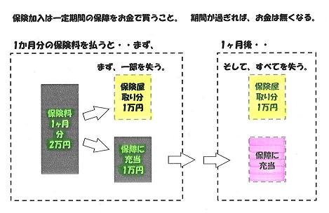 『保険加入=お金を失うこと!』自分の頭でシンプルに考えれば、お金をたれ流さずに済みます。生活設計が容易になります。ついに、ついに、雪が・・。 (寒っ!!)正月明けにセミナーがあります。岩手県内の市町村職員の方々(30代・40代)が対象です。その原稿を年内に提出しなければなりません。生命保険のページの絵・・です。保険料の仕組みをシンプルに捉えるための資料・・です。仮に毎月2万円の保険料を払えば・・そのお金がどうなっていくか?シンプルに考えるための絵・・です。まず、1ヶ月分の保険料を払うと、保険屋さんの給料などの分(A)が、しっかりと引かれます。 ※生涯手厚い保障は? 長期間・・生命保険に加入すれば、 加入者ではなく、保険屋さんが 生涯手厚い保障を受けます。 保険料をもらう都度、 自分たちの取り分を確保 できるんだから当然・・です。 一生・・加入していてもらえば、 保険屋さんは安泰・・なわけです。残った分(B)が、保障に充当されます。で・・1ヶ月が経過すると・・「何も無くてよかったですね♪」・・と言われて、そのお金も無くなります。毎月、毎月、その繰り返し・・です。1年では、24万円を失います。10年とか、40年とか、長い期間では・・すごい金額になります。シンプルに考えればいいんです。『保険加入=お金を失うこと!』 ・・です。できるだけ加入しないことで、失うお金は少なくできます。保険加入は やむを得ない場合のみ!保険以外に方法が無い場合のみ!そんな場合のみ、お金を捨てることを覚悟の上で、しぶしぶ、いやいや、加入しよう!《 質問希望? 》 まずブログ右上の「キーワード検索」を。「キーワード検索」に言葉 ⇒ 「このブログ内」 ⇒ 「検索」又は右帯の記事を参照下さい。(「家計の常識を疑え!」他)《 顧問会員希望? 》 「顧問会員って何?」で支援内容や当事務所との関係を確認の上、右記へ fpst@axel.ocn.ne.jp