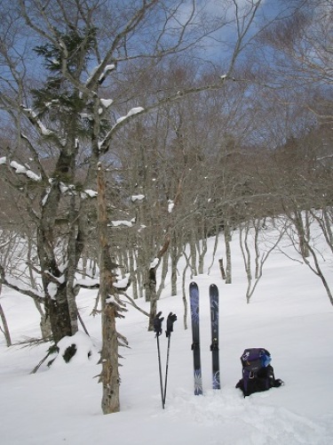 春の腐れ雪、今日は気持ちよく快適に滑り降りてきました。満足、満足・・。2週間ほど前にも山に登り、快適なダウンヒルだったんですが、雪質の変化でブレーキがかかり、クラッシュ!!前方に放り投げられてしまいました。手首にヒビ?数日間、副木をあてがわれ、包帯グルグル状態でした。 クラッシュしたのは、緩斜面でした。 急斜面なら・・連続小回りで いい感じでダウンヒルできますが、 緩斜面だと・・急斜面のような ターンをしていると止まってしまうので、 前へ前へと・・縦長の小回りを してしまいます。 気持ちも体も積極的に・・ 前へ前へ行っている時に 雪質変化で急ブレーキを かけられたら、結果は明らか。 ・・上体が前方へ飛びます。(^^ゞ久しぶりに好天だったので、スキーで山 ・・登ってきました。(しょうこりもなく・・)テレマークスキー・・です。メリハリをつけて・・生活設計。網張温泉スキー場の駐車場から登り始めます。ゲレンデを登ります。(もちろんリフトは動いていません)登山スタートが10:20 遅すぎます。せめて9:20なら・・。目的地到着は遅くても13時前にしたいところです。安全を考えて・・14時ぐらいには下山できるように。(遅くても最大15時)目的地は黒倉岳山頂ですが、スタートが遅すぎたので、とりあえず・・登り2時間で行けるところまで・・ということに。私より15分ほど前にスキーで登り始めた人がいます。カラフルなウエアで長身の人・・です。チラッと見た感じ、歩きが・・遅い。(なんだ・・? 極端に遅いな・・)後からスタートした私ですが、すぐに追いついてしまいました。長身だし、カラフルなウエアだし、ひょっとしたら外人かな・・?追い越し際に声をかけてみました。「どちらまで行かれるんですか?」「あ・・いや、2時間ぐらいで 行けるところまで・・ トレーニング・・です。」外人ではなくて日本人です。・・が、高齢者・・です。70代のおじいちゃん・・?(登るのが遅いわけだ・・)「今日は天気が良くていいですね~。」「ほんとに、いい天気ですね~。」と言いつつ、追い抜いていきました。見る見る内に差が広がります。第一リフト分を登り切って振り返ると・・おじいちゃん・・まだ半分も来ていません。う~~ん、おじいちゃんの2時間は、ゲレンデの中だけで終了・・だな。第2リフト分の苦しい急斜面を登り切れば、ウサギ平・・というところです。ここまでの目安は60分前後です。(今日は54分でした)あとはもう・・ダラダラ・・です。のんびり歩きます。第3リフト分を抜けて、ゲレンデの上へ突き抜けました。「やっと・・山に来た。」汗だく・・です。キャップのつばから汗がしたたり落ちます。ここから先は、360度のパノラマです。進行方向右側は、犬倉岳。この辺は風の通り道で、樹木が生きられず、一帯がササやぶ・・です。(雪があるから好きなルートを歩ける)進行方向左側は、三石山などの裏岩手連峰。パノラマ、パノラマ・・。360度のパノラマを眺めながら進みます。正面奥の真っ白い山が岩手山山頂。左の土が露出した山頂が、黒倉岳。(今日の目的地)この2つの山頂の間が大火口になっています。小さな池があります。真冬の大火口は、まさに神の領域・・。新雪・深雪の急斜面の滑降は・・極楽♪すべての音が雪に染み込みます。(真冬の話・・ですが)クリスマスツリーにいいですね。オオシラビソ・・といいます。これが厳冬期、モンスターになります。(またの名をアオモリトドマツ)ダケカンバ。今日は2時間でここまで・・でした。左の斜面が、姥倉岳の山腹。あまりにも暑かったので、フリースを脱いでTシャツだけに・・。以降の下山行動もダウンヒルも、Tシャツで快適に・・。春スキーの魅力です。若いころはTシャツではなく、上半身はハダカで、下半身はショートスパッツで、(簡単に言えば、海水浴スタイルで)山を滑り降りていました。おバカさん・・です。このだだっ広い斜面の上が姥倉岳山頂。なだれが怖い・・。さあ! 気持ち良くダウンヒル・・。 木々の間を滑り抜けます。ゲレンデに入ってきて、雪面の滑りの跡を見ると・・第2リフト終点のウサギ平から下の急斜面に、新たな小回りターンの跡がありました。 あの・・おじいちゃんだ。2時間かけてがんばって、ウサギ平まで登って来たんだ・・。登りはメチャクチャお年寄りだけど、滑りはひょっとして・・うまい?規則正しい小回りターンで急斜面を滑り降りています。素晴らしい! きちんとしたトレーニングだ。実は登りの雰囲気から・・ひょっとしたら途中で倒れたりしているかもしれないから、帰り道、気を付けて見て行こうなんて思っていましたが、杞憂でした。駐車場が見えるところまで滑って行ったら、もうすでにおじいちゃんの車はなくなっていました。(今ごろ・・温泉に?)でも・・よかった、よかった。以前クラッシュした場所は慎重に無事に通過して、最後・・駐車場に向かって降りる斜面の頭にでました。もうこのへんは雪が融けて、滑ら