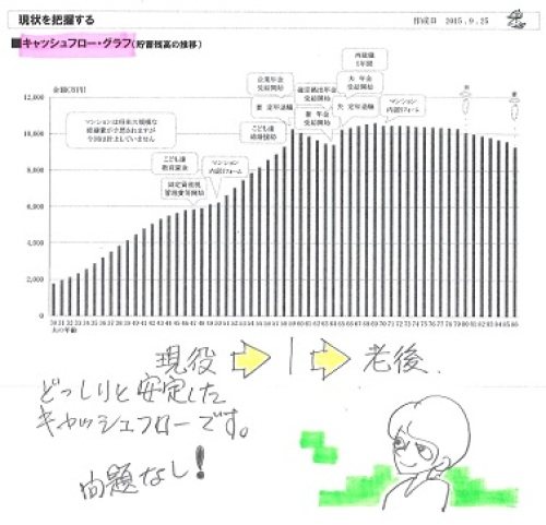 2,500万円で契約したら、いつの間にか3,200万円に。35坪の建物で?自分の頭で考える生活設計。〇元メール顧問会員のMさん(30代) (相談:ライフプランニング) 2014.4.2、現状診断 終了。9.11の記事参照住宅ローン選び 業者選び 迷ってます ※知り合いに建築を相談。 約35坪の建物が・・ 2,500万円で建てられる ということで契約したら、 あれよあれよという間に、 3,200万円に・・。 不信感を抱いて解約。で・・また、メールをいただきました。ブログにて返信ありがとうございました。業者をよく比較しなかったのが1番いけなかったのですが ※人生最大の買い物なのに、 最初から業者を決めて しまってはいけない。 (当たり前) 500万円ぐらい高い買い物を しても気づかないことになる。 ひどい場合は1,000万円とか 2,000万円も高い買い物に なる場合も実際にある。 それでも本人は気づかない。 比較検討していないから 当たり前・・ということになる。主人の弟の知り合いの業者と言われ少し安心してしまい ※そんなことは、 何の安心材料にもならない。他のところよりは高くはならないだろうと勝手に思ってしまった自分たちがいけないですよね。 ※ずばり!おバカさん! (失礼!) 当初から1社にしぼって 話を進めてはいけない。 (当たり前)契約は一通りの見積を出してもらいその金額は2500万位でしたが ※この2,500万円と言う金額 自体が明らかに高い・・が、 よそと比べることをしないから、 まったく気づかない。そこからどんどんオプションのような形で値段はあがっていきました。 ※とんでもない業者だ。もっと細かく金額を決めて出してもらってから普通は契約すべきですよね(ーー;) ※それでもダメ!・・だ。 金額を決めたって、 複数の業者と比較検討しない 内は、契約してはいけない。これ以上はほとんど上がりませんと言う言葉を信じたらだめですね。 ※競合相手がいない状態では、 業者の言い値で買い物を することになる。 この業者はたまたま やり方が下手だっただけで、 他と比較することをしない おバカな客(失礼!)が相手なら、 上手にやっていれば 契約して着工することは簡単だ。結果こんな高額になりもっとよく他の業者との金額を比較すべきだったと本当に反省の毎日です… ※もっと色々な実物を見たり、 多くの人の話を聞いたり、 ネットで徹底的に調べたり、 ・・して、 自分たちの目が肥えてからで いい、マイホーム建築は。 まったくの素人のままで 急に走り出すから、 つまらない交通事故に会う。 知り合い値引きというものが見積の項目にあったのですが ※そんなものはない。あってないようなものなので他の部分に金額をかなり上乗せされ高い見積になっているんだと思います… ※35坪で2,500万円? 地元業者のくせに、 価格だけは大手メーカーなみだ。変動金利ばかり進めてくる業者なのでそこも困惑でした。月々の支払額が最初は固定に比べ安いからだと思いますが… ※建築費を高くしたい業者は、 返済を少なく見せる必要がある。とりあえず今回はキャンセルするので建築はしませんのでもっとよく自分たちで勉強し情報を収集することにしました。ブログももう一度しっかり読んで勉強させて頂きます。 ※2度と同じことをしてはいけない。 きちんと比較検討すれば、 一定レベル以上の住宅でも、 生活できる状態で・・ だいたい60万円/坪で納まる。 35坪×60万円/坪=2,100万円 (カーテン・照明・外構等込み) 地元業者3~5社できちんと 比較検討すれば・・ もっと安くなって、50万円台/坪 も、あり得る。 家族:3人(+1)。 夫30代会社員。妻30代会社員。幼児。 (今年・・夏過ぎに、第2子が誕生予定) ・・当時。 住まい:賃貸。 貯蓄:470万円。 負債:68万円。(ホンダファイナンス) ※こら・・だめだぞ~ 車を借金で買っちゃあ・・。夫婦それぞれ会社員で、それほど収入が多いわけではありませんが、 安定的なキャッシュフロー・・です。 当然のことです。 家計は収入と支出のバランスです。 M家では収入なりの生活をしています。 毎年一定の貯蓄がしていけます。 当然、安定的なキャッシュフローに なります。 生命保険は元々・・〇〇生命の「生きるチカラ」とかいう「お金たれ流し保険」に加入していましたが、 顧問会員になった前後に解約したようです。 保険料・・月9,853円でしたが、 当事務所の会員になったことをキッカケに、すぐやめた・・ようです。5ヶ月間で49,265円をたれ流して、なんとか脱出したようです。 (もったいなかった・・けど、 ず~っと たれ流しているよりはマシ)で・・、現状診断の順番を待つ間に、その代わりの死亡保障確保のため、 収入保障保険で「とりあえず加入」を していました。 (H25年8月) 総額:2,088万円の死亡保障が、 保険料:年18,804円で済みます。 (安い!)それで・・ 今回の現状診断の検証結果で、 死亡保障必要額はいくらになった でしょうか? 結論!!夫婦とも死亡保障不要! ・・です。現在も将来も死亡保障不要! ・・です。これから第2子が産まれるけど、 夫婦とも