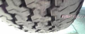 こんなタイヤを履いている人はいませんか。 フロント右のタイヤですが、内側が減って丸くなっています。原因は事故で右のタイヤがぶつけられたことのようです。下を覗くと...案の定ロワーアームがぐにゃっと曲がっています。写真の右側が正常な方のアームです。軽自動車は強度が弱いですから縁石にぶつけただけでも曲がってしまうことがあります。そのためタイヤが逆ハの字に、つまり前方が外側に向いてしまうため、タイヤの内側が摩擦で磨り減ることになります。本来このアームをそっくり交換すべきなのですが、修理代のこともあり、今回は応急処置をすることにしました。この写真の棒:タイロッドにあるロックナットを緩め、(軽ワゴンはロッドの両端のネジを両方とも緩める)真ん中のロッドをモンキーレンチで回してタイヤの角度が内向きになるように調整します。アライメントテスターの上で前輪を動かして何度も測定・調整を繰り返しまっすぐ走るように直します。これで一応修理終わり。アライメントが狂っていると、タイヤが偏磨耗するので、寿命が短くなりますし、摩擦が大きいので燃費も少し悪くなるのではないかと思います。車検の時は調整されますが、車検まで期間のある人で、心配なら整備してもらいましょう。アライメントの狂いを発見する方法:1.今日の修理のようにタイヤが片べりしている。(ただし前輪、特に右側の外側が丸く磨り減るのはカーブを高速で曲がるか、ブレーキをかけながら曲がる習慣のある人かも。これは修理の対象にはならない。もっと優しい運転をしよう。)2. 小雨の走行で少し路面が濡れている状態である程度(20分以上かな)走行した後しばらくすると道路との摩擦熱でタイヤの表面についた水分が乾燥してくる。内側・外側どちらかが早く乾燥するなら、そちらの摩擦が大きい。3. 同様に、ある程度走行した後、タイヤの表面を手で触って内側・外側の温度が違うか調べる。4. 直進状態なのにハンドルが左右に偏っている。【見積商品】ダンロップDIGITIRE_ECO_EC201デジタイヤECO EC201見積※見積商品につきこちらからは購入できません