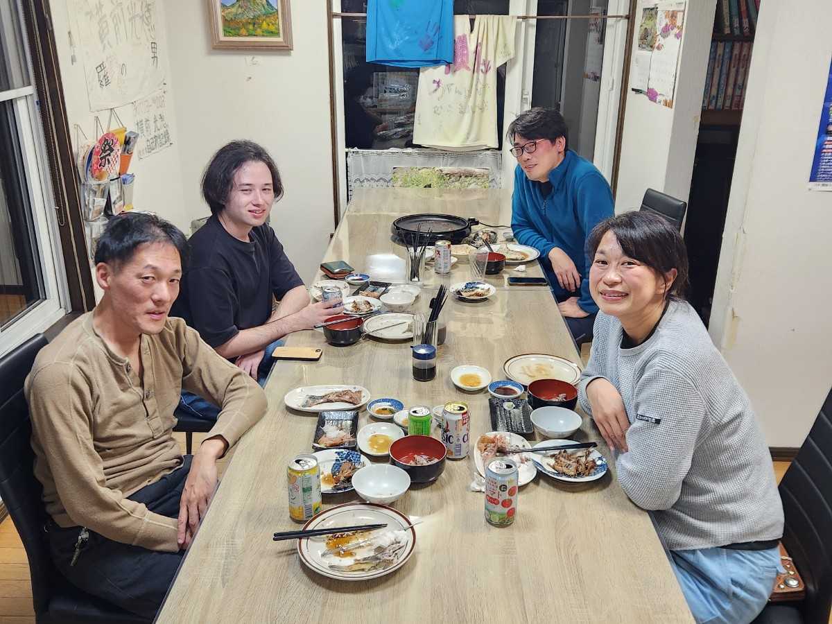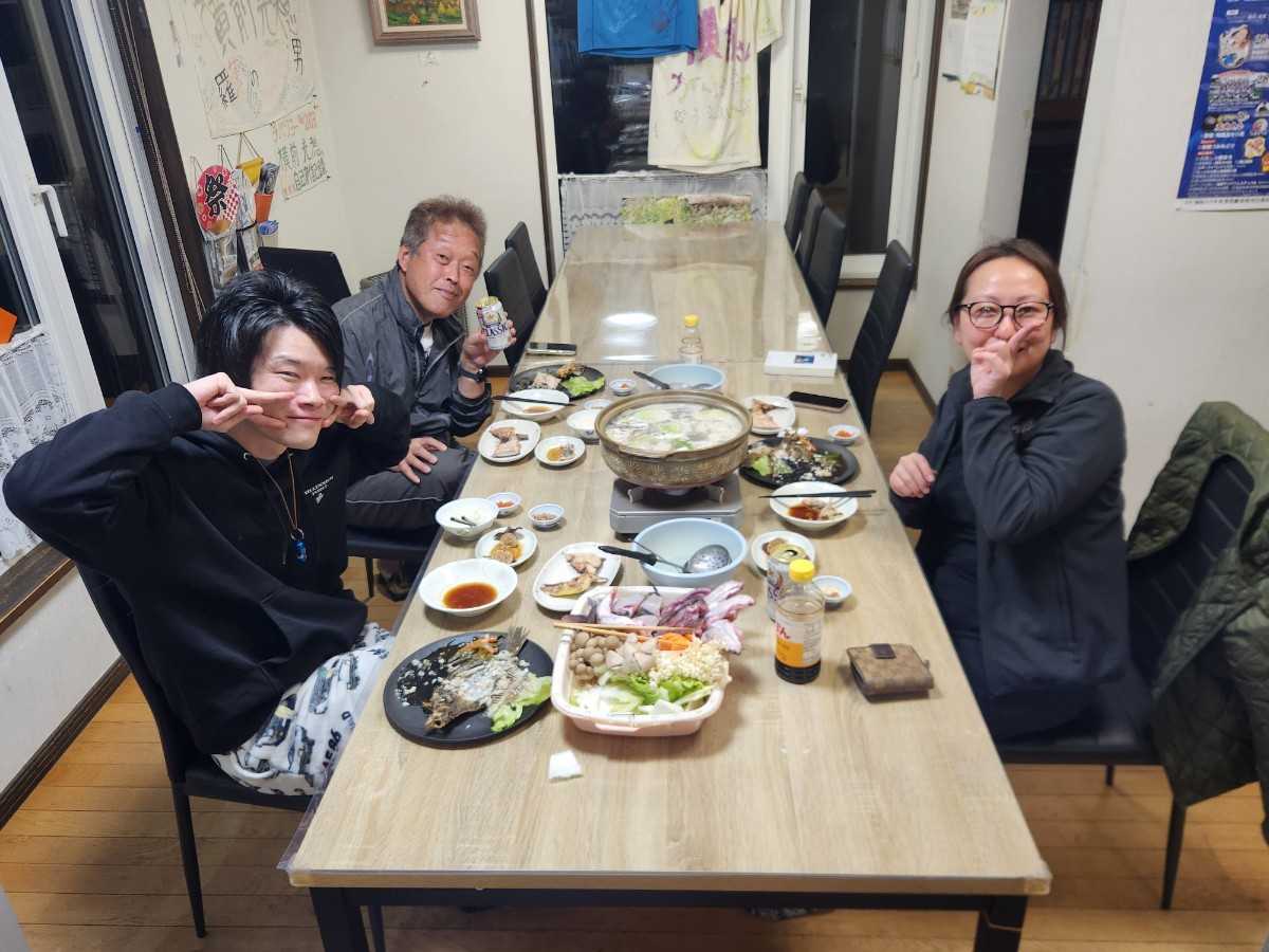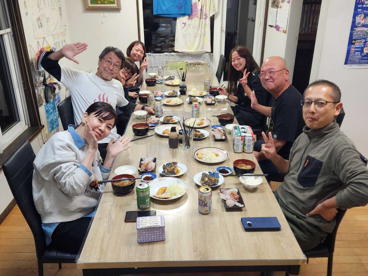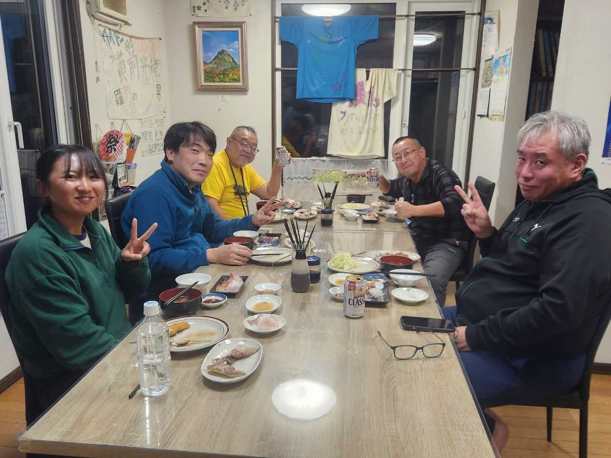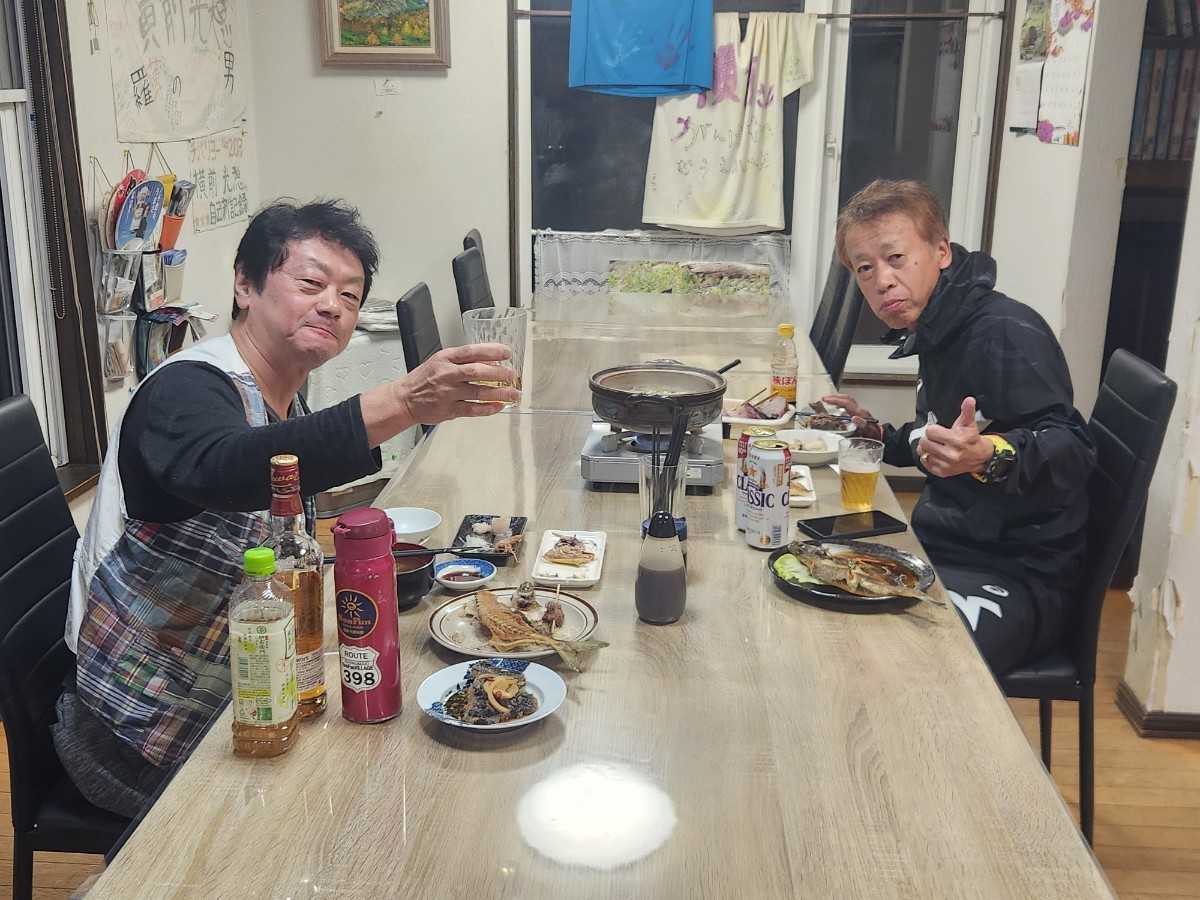 宿料金は1泊2食付き5,300円で現金のみの対応です 尚、20代の方は最大500円引き(10代の学生さんも含まれます)宿料金はこちらから 乗っ取られたfacebookは昨日のお客さん(Aちゃん)に復旧してもらいました 乗っ取られそうになってる人は・・ 不正にアクセスされた場合にfacebookアカウントを復旧する方法はこちらから 昨日のお客さん 知床ネイチャークルーズのAノちゃん(右前)を1日ヘルパーに頼んでの開所記念(11月15日)パーティー(第一弾)でした ^^ 常連さんに声をかけて最高のお料理でおもてなしです ^^この他にもお料理はで出て・・ 刺身盛り(2皿/8品)、めんめ(キンキ)の湯煮、トキシラズの塩ふり焼き、マダラのホイル焼き、イワシのナンバン漬け、タラの共あえ、カレイの卵の煮付け、めふんの正油漬け夕食が終わって待ちに待った?飲み会スタートです 最後の写真は3:04だったけどまだまだ騒いでいた様な感じです 昨夜は泡盛を飲んでいたので意外に早くからの記憶がありません ✌️ 写真を見ても思い出せません (笑) みなさん! お疲れ様でした 楽しい時間をありがとう😊 そして左脹脛を怪我しちゃいました 11月23日の伊是名島トライアスロンに黄色信号です ┐('~`;)┌ 国道334号知床横断道路は、4月下旬まで冬季全面通行止めになります 今日からしばらくお客さんは居ません11月の予約状況SUNMONTUEWEDTHUFRISAT1 /2 /3 /4 /5 /6 /7 /8 /9 /10 休館 11 休館 12 〇13 〇14 〇15 ×16 〇17 〇18 休館 19 休館 20 休館 21 休館 22 休館 23 休館 24 休館 25 休館 26 休館 27 休館 28 休館 29 〇30 〇12月の予約状況SUNMONTUEWEDTHUFRISAT1 〇2 〇3 〇4 〇5 〇6 〇7 〇8 休館 9 休館 10 休館 11 休館 12 休館 13 休館 14 休館 15 休館 16 休館 17 休館 18 休館 19 〇20 〇21 〇22 〇23 休館 24 休館 25 休館 26 〇27 〇28 〇29 〇30 〇31 〇〇…とおまわり存続の危機 △…あと1~3人、急げ !! ×…満員御礼m(_ _)m 1月は7日から月末まで休館しますとおまわり水産からです (全ての商品は税込/送料別) 令和6年の4月よりクロネコヤマトの送料が値上げしました新料金はこちらから ・イクラ醤油漬け (売切れ) ・新巻鮭 (売切れ)・山漬け鮭・手ほぐしフレーク 絶賛販売中 (120g/瓶詰め) ……… 1,300円 (160g/瓶詰め) ……… 1,500円 ・イカの塩辛(190g 瓶詰め) … 1,200円 保存方法は要冷凍(−18℃で保存して下さい)絶賛発売中 ・ソウハチガレイの干物(3枚入り) … 700円絶賛発売中 ・めふんの正油漬け (190g 瓶詰め) … 900円(残りわずか)・天然羅臼昆布(キズ) (2枚入り,海鮮工房) (販売時期 通年) … 1,400円(5個まで送料600円) 絶賛販売中※キズ昆布なので天然物でも格安で紹介しています。お買い得です。・イバラガニの足(2kg 冷凍)・・・19,000円 ・タラバガニの足(2kg 冷凍)・・・27,500円 ※ 在庫は持たないので値上がりと売切れの可能性もありますので とおまわり水産までお問い合わせ下さい・カバノアナタケ 500g … 3,000円 1kg ……… 5,000円 採った物を数日間天日干しさせての発送です 皮や木が付いている場合があるので相場より安く設定しています カバノアナタケについてはこちらから 注文方法並びに各種問い合わせ メール toomawari.suisan★ezweb.ne.jp (★を@に代えて下さい) 電話 (0153)87-2808 FAX (0153)87-3913 にてお願いします とおまわり水産その他の商品はこちらから「幸せ」を背負って 積雪期単独北海道分水嶺縦断記 2022年の厳冬期に北海道分水嶺ぶんすいれい 670kmを63日間で単独縦走した野村良太のむらりょうた 北海道大学のワンダーフォーゲル部のOBで通話『オレンジ』(オレンジ色が好きだから) 大学に入学してから登山を始め、部長も務め 現役時代も卒部してからも、とおまわりに良く泊まりに来てくれました ^^「幸せ」を背負って 積雪期単独北海道分水嶺縦断記とおまわりでもサイン入りで販売中です オレンジが縦走中に地形図の裏面に書き記した日記を柱として これまでの登山を振り返るルポルタージュです 北大ワンゲル部での登山との出合い、山仲間との登山と単独行の目覚め 一冬での知床・日高の単独縦走 そして北海道登山の総仕上げとしての北海道分水嶺縦走を達成するまでを綴る本です定価:本体 1,600円+税 絶賛!販売中!!21世紀の日本地図 この本は2022年の6月に日本一周歩き旅の途中で 泊まってくれた平井佑樹君が歩き続けた984日間で 見て感じた日本をまとめたガイドブックです2021年5月12日から2024年1月20日までの984日間、歩いて日本を旅していました。旅を終えたとき、すばらしい旅の出会いと美しい景色が、この時代に確かに存在したことを残したい。そんな想いが湧き上がりました。自然災害や後継者不足、さまざまな理由によって今ある景色は変わっていきます。そして100年後の景色もきっと変わっているでしょう。けれども確かにその場所で誰かが生きていたこと、後世に残すべき文化や各地の美しい食事、美しい景色が存在した事実は変わりません。そのことが誰かの記憶だけではなく、記録として未来に残り続けてくれたらとこの本を「21世紀の日本地図」と名付けました。47都道府県全てに自分の足で訪れ、この目で
