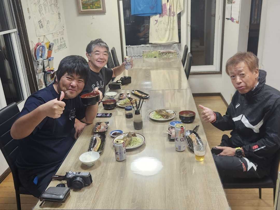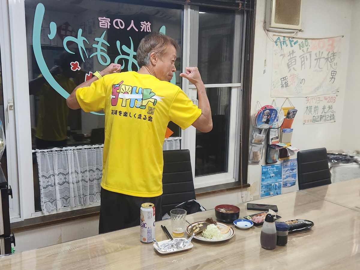 宿料金は1泊2食付き5,300円で現金のみの対応です 尚、20代の方は最大500円引き(10代の学生さんも含まれます)宿料金はこちらから 昨日は38回目の伊是名いぜな島トライアスロンで俺は初参加 レース当日の朝は6時のご飯の後、6時40分に家を出て ランスタート(バイクゴール)の競技場にランで使う シューズ,帽子,補給食を入れた袋を自分の番号の書かれたバイクラックに縛り付けます 7:01最終受付をしてバイクをラックに置きますリレー式のレースでバイクを漕ぐ⭐️ちゃんスタート前のスイムコース宿の母さんがスイムゴールの写真を撮ってくれてました潮の流れが早くてヘロヘロでした ┐('~`;)┌ バイクは島を5周、スイムが遅かったので バイクでだいぶ抜きました ٩( ᐛ )و ラン開始早々に心配していた右脹脛に違和感を感じ 5km辺りでたぶん切れたのでしょう、歩くのも辛くなりました リタイヤも考えたけど、初めての大会でそれは嫌なので 痛みに慣れようと歩き出しました そして歩いたり走ったりで折り返しに来た所で 用意していたロキソニンでドーピング だんだん痛みが薄れてゆっくりけど走れて ラスト5kmでペースを上げてラスト3kmからは キロ5分を上回るハイペースでゴールまで もっと早く飲めば良かった (^^;; 苦手なスイムで真ん中位で、バイクでごぼう抜きして ランでごぼう抜きされると言ういつもやつでした ^^母さん撮影ゴール後宿泊者3人で家に戻ってシャワーを浴びて、レースの話で盛り上がり立っている人は母さんの二男さん 19時から『ふれあいパーティー』に3人で行って来ました徐々に人が集まり⭐️ちゃん達も母さんも来ました ^^表彰式 表彰式が終わると余興タイムです初めてちゃんとフラダンスを見たけど感動でした ^^伊是名太鼓、これまたちょ〜感動でした ٩( ᐛ )و ラストは地元のバンドで選手総立ち ⤴︎⤴︎⤴︎二男さんも来て家で飲み直しお世話になったI夫婦と真ん中は二男さん 酔っ払い過ぎていつ寝たのか分かりません (笑) こうして長くて熱い1日が終わりました ^^12月の予約状況SUNMONTUEWEDTHUFRISAT1 〇2 〇3 〇4 〇5 〇6 〇7 〇8 休館 9 休館 10 休館 11 休館 12 休館 13 休館 14 休館 15 休館 16 休館 17 休館 18 休館 19 〇20 〇21 〇22 〇23 休館 24 休館 25 休館 26 〇27 〇28 〇29 〇30 〇31 〇〇…とおまわり存続の危機 △…あと1~3人、急げ !! ×…満員御礼m(_ _)m 1月は7日から月末まで休館しますとおまわり水産からです (全ての商品は税込/送料別) 令和6年の4月よりクロネコヤマトの送料が値上げしました新料金はこちらから ・イクラ醤油漬け (売切れ) ・新巻鮭 (売切れ)・山漬け鮭・手ほぐしフレーク 絶賛販売中 (120g/瓶詰め) ……… 1,300円 (160g/瓶詰め) ……… 1,500円 ・イカの一夜干し 出来上がりました ※ 藁縄で干すので藁がついている場合もありますので予めご了承下さい S (140g〜159g/2枚入り)・・・1,000円 M (160g〜199g)・・・・・・・700円 L (200g〜249g)・・・・・・・950円 2L (250g〜299g)・・・・・1,200円 (残りわずか)・イカの塩辛(190g 瓶詰め) … 1,200円 保存方法は要冷凍(−18℃で保存して下さい)絶賛発売中 ・ソウハチガレイの干物(3枚入り) … 700円絶賛発売中 ・めふんの正油漬け (180g 瓶詰め) … 900円 (入荷)10g減らして180gになりました・天然羅臼昆布(キズ) (2枚入り,海鮮工房) (販売時期 通年) … 1,400円(5個まで送料600円) 絶賛販売中※キズ昆布なので天然物でも格安で紹介しています。お買い得です。・イバラガニの足(2kg 冷凍)・・・19,000円 ・タラバガニの足(2kg 冷凍)・・・27,500円 ※ 在庫は持たないので値上がりと売切れの可能性もありますので とおまわり水産までお問い合わせ下さい・カバノアナタケ 500g … 3,000円 1kg ……… 5,000円 採った物を数日間天日干しさせての発送です 皮や木が付いている場合があるので相場より安く設定しています カバノアナタケについてはこちらから 注文方法並びに各種問い合わせ メール toomawari.suisan★ezweb.ne.jp (★を@に代えて下さい) 電話 (0153)87-2808 FAX (0153)87-3913 にてお願いします とおまわり水産その他の商品はこちらから「幸せ」を背負って 積雪期単独北海道分水嶺縦断記 2022年の厳冬期に北海道分水嶺ぶんすいれい 670kmを63日間で単独縦走した野村良太のむらりょうた 北海道大学のワンダーフォーゲル部のOBで通話『オレンジ』(オレンジ色が好きだから) 大学に入学してから登山を始め、部長も務め 現役時代も卒部してからも、とおまわりに良く泊まりに来てくれました ^^「幸せ」を背負って 積雪期単独北海道分水嶺縦断記とおまわりでもサイン入りで販売中です オレンジが縦走中に地形図の裏面に書き記した日記を柱として これまでの登山を振り返るルポルタージュです 北大ワンゲル部での登山との出合い、山仲間との登山と単独行の目覚め 一冬での知床・日高の単独縦走 そして北海道登山の総仕上げとしての北海道分水嶺縦走を達成するまでを綴る本です定価:本体 1,600円+税 絶賛!販売中!!21世紀の日本地図 この本は2022年の6月に日本一周歩き旅の途中で 泊まってくれた平井佑樹君が
