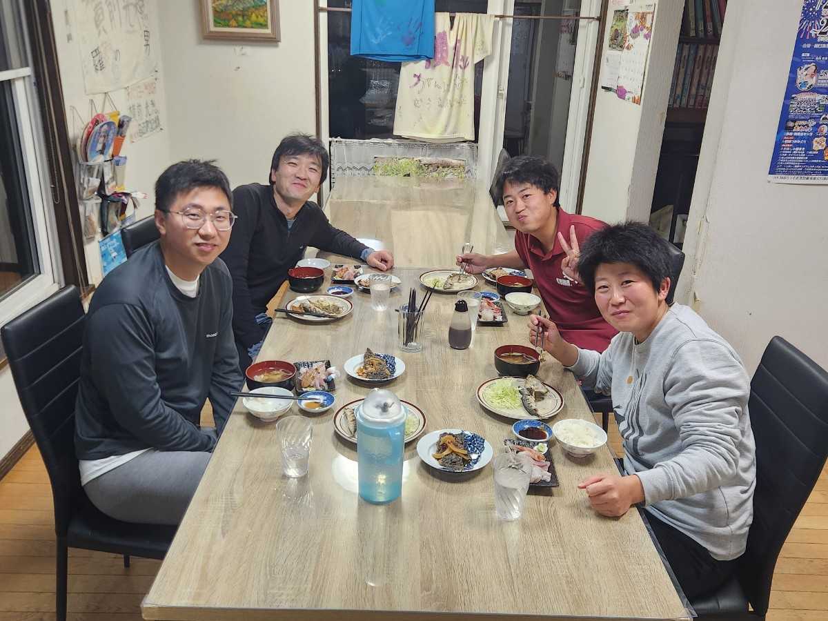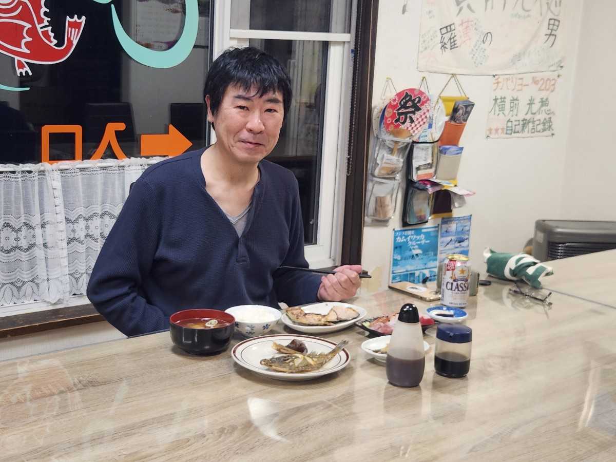 宿料金は1泊2食付き5,300円で現金のみの対応です 尚、20代の方は最大500円引き(10代の学生さんも含まれます)宿料金はこちらから 昨日のお客さん 今年2回目のO(左2)は去年に続きHさん(左前)と熊の写真を撮りに来ました ^^ 今年の2月に初めて泊まりに来てくれたOさん(左前)は今回で3回目です ^^ この他、台湾からのご夫婦が飛び込みで夕食抜きで泊まってくれて、旦那さんは朝早くからO達と熊の写真を撮りに行きました飲み会ラストまでメンバー朝が早いんで22:36 💤💤💤 朝一で漁師時代に乗っていた船の親方からオオカミウオを貰いました \(^^)/ 刺身、フライ、焼き・・ 見た目は悪いけど、何をして食べても美味しいんです ٩( ᐛ )و 一昨日、肩甲骨剥がしのYouTubeを見ながら10分程度やったのが原因なのか 昼を過ぎた頃から痛みが出て、寝る前には動けない程の激痛 昨日の夜寝る時まで激痛 😣 今日の朝起きると、痛みはだいぶ引きました 炎症がおきていた様です 昨日だったら魚捌きが出来なかったはず (^◇^;) この歳になると新たなストレッチをする時は ストレッチの為のストレッチも必要な様です ┐('~`;)┌ 今日のお客さんは2人です10月の予約状況SUNMONTUEWEDTHUFRISAT1 /2 /3 /4 /5 /6 /7 /8 /9 /10 /11 /12 /13 /14 /15 〇16 〇17 休館 18 〇19 〇20 〇21 〇22 〇23 〇24 〇25 〇26 〇27 〇28 〇29 〇30 〇31 〇11月の予約状況SUNMONTUEWEDTHUFRISAT1 〇2 〇3 〇4 〇5 〇6 〇7 〇8 ×9 〇10 〇11 〇12 〇13 〇14 〇15 ×16 〇17 〇18 休館 19 休館 20 休館 21 休館 22 休館 23 休館 24 休館 25 休館 26 休館 27 〇28 〇29 〇30 〇12月の予約状況SUNMONTUEWEDTHUFRISAT1 〇2 〇3 〇4 〇5 〇6 〇7 〇8 〇9 〇10 〇11 休館 12 休館 13 休館 14 休館 15 休館 16 〇17 〇18 〇19 〇20 〇21 〇22 〇23 休館 24 休館 25 休館 26 〇27 〇28 〇29 〇30 〇31 〇〇…とおまわり存続の危機 △…あと1~3人、急げ !! ×…満員御礼m(_ _)m 1月は7日から月末まで休館します《熊クルーズ、とおまわりだけの特別価格》とおまわり1泊(2食付き)+熊クルーズ1航海(2時間〜2時間半)の料金 お客さん1人での乗船+1泊 (2食付き)・・・・・15,500円 お客さん2人での乗船+1泊 (2食付き)・・・・・13,500円(1人) お客さん3人以上での乗船+1泊 (2食付き)・・・12,500円(1人) 詳しくはこちらから 夏の各種ツアーについてはこちらからとおまわり水産からです (全ての商品は税込/送料別) 令和6年の4月よりクロネコヤマトの送料が値上げしました新料金はこちらから イクラの販売開始します・・・ けど ・・・ ・イクラ醤油漬け 今年の羅臼の秋鮭は記録的な不漁で去年の10数%の水揚げしか無く 値段の上昇が止まりません 筋子1kgあたりの値段は10年前の5倍です 今年はイクラの単価も高くなるのであまり在庫を持ちません 500gのイクラは注文が入ってから作ります(但し、筋子が買えなかったら作れない可能性もあります) (500g パック)・・・12,000円 (300g パック)・・・7,400円 (180g/瓶詰め) ・・・4,500円 宿で出していたイクラ丼も値上げします イクラ丼 (イクラ90g)… 2,000円・新巻鮭 (塩蔵) … 7,800円 (三枚おろし/冷凍) ※ 今年はセットはありません ※ 在庫は持ちません欲しい人は11月10日までに注文して下さい 新鮮なオスの秋鮭(羅臼産)の内臓とエラを取り除き丁寧に血を抜いています・山漬け鮭・手ほぐしフレーク フレークも値上げします (120g/瓶詰め) ……… 1,300円 (160g/瓶詰め) ……… 1,500円 ・羅臼産開きホッケ 中 (2枚入り) … 1,680円 大 (331g〜399g) … 1,200円 特大 (400g以上) … 1,500円 ※ 真空パックが切れている場合がありますが品質は変わりません・イカの塩辛(190g 瓶詰め) … 1,200円 保存方法は要冷凍(−18℃で保存して下さい)絶賛販売中 ・イカの一夜干し絶賛販売中 ※ 藁縄で干すので藁がついている場合もありますので予めご了承下さい M (160g〜199g)・・・・・・・700円 L (200g〜249g)・・・・・・・950円 2L (250g〜299g)・・・・・1,200円 ・めふんの正油漬け (190g 瓶詰め) … 900円絶賛発売中 ・天然羅臼昆布(キズ) (2枚入り,海鮮工房) (販売時期 通年) … 1,400円(5個まで送料600円) 絶賛販売中※キズ昆布なので天然物でも格安で紹介しています。お買い得です。・イバラガニの足(2kg 冷凍)・・・19,000円 ・タラバガニの足(2kg 冷凍)・・・27,500円 ※ 在庫は持たないので値上がりと売切れの可能性もありますので とおまわり水産までお問い合わせ下さい・カバノアナタケ 500g … 3,000円 1kg ……… 5,000円 採った物を数日間天日干しさせての発送です 皮や木が付いている場合があるので相場より安く設定しています カバノアナタケについてはこちらから 注文方法並びに各種問い合わせ メール toomawari.suisan★ezweb.ne.jp (★を@に代えて下さい) 電話 (0153)87-2808 FAX (0153)87-3913 にてお願いします とおまわり水産その他の商品はこちらから「幸せ」を背負って 積雪期単独北海道分水嶺縦断記 2022年の厳冬期に北海道分水嶺ぶんすいれい 670kmを63日間で単独縦走した野村良太のむらりょうた 北海道大学のワンダーフォーゲル部のOBで通話『オレンジ』(オレンジ色が好きだから) 大学に入学してから登山を始め、部長も務め 現役時代も