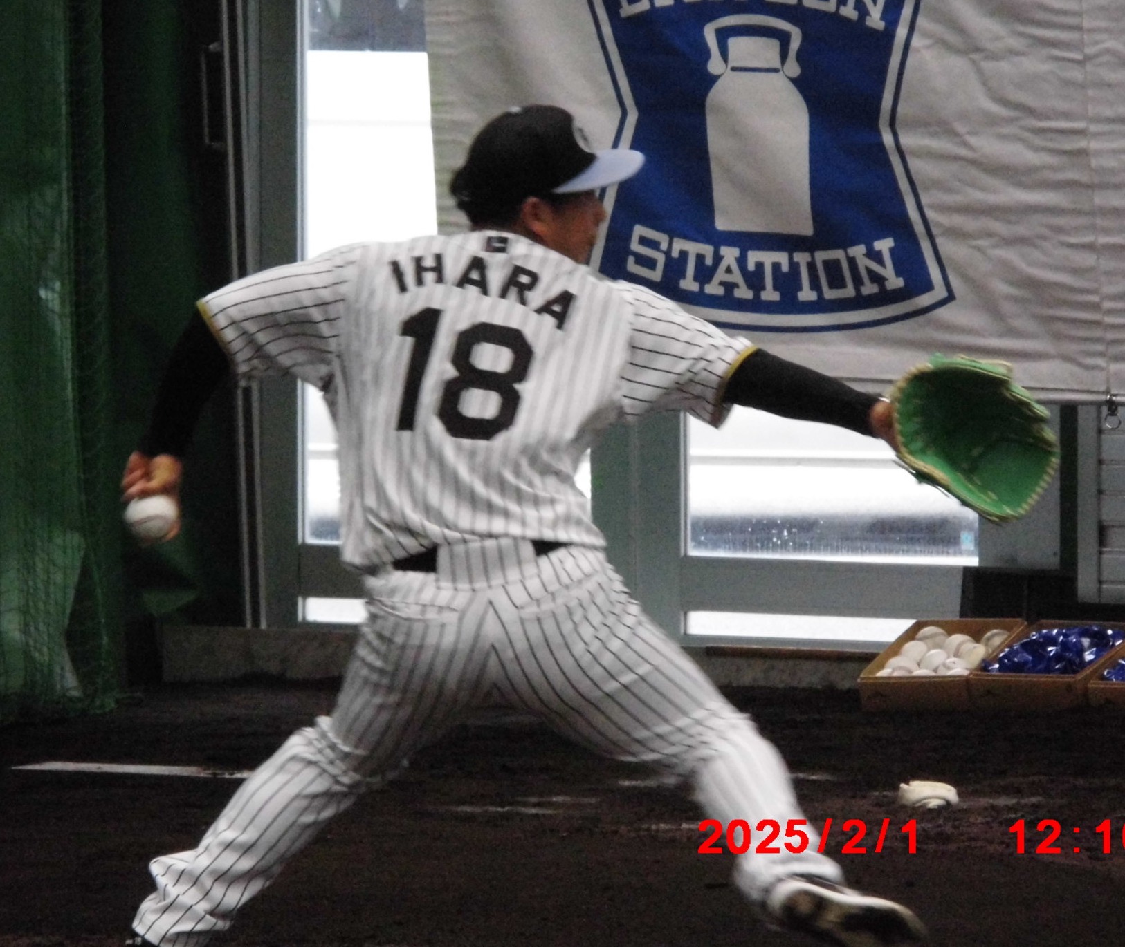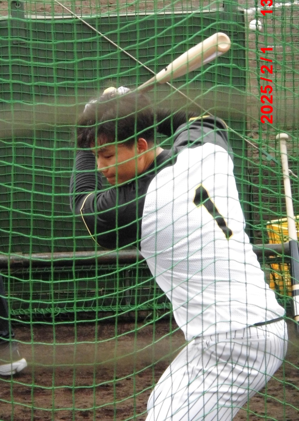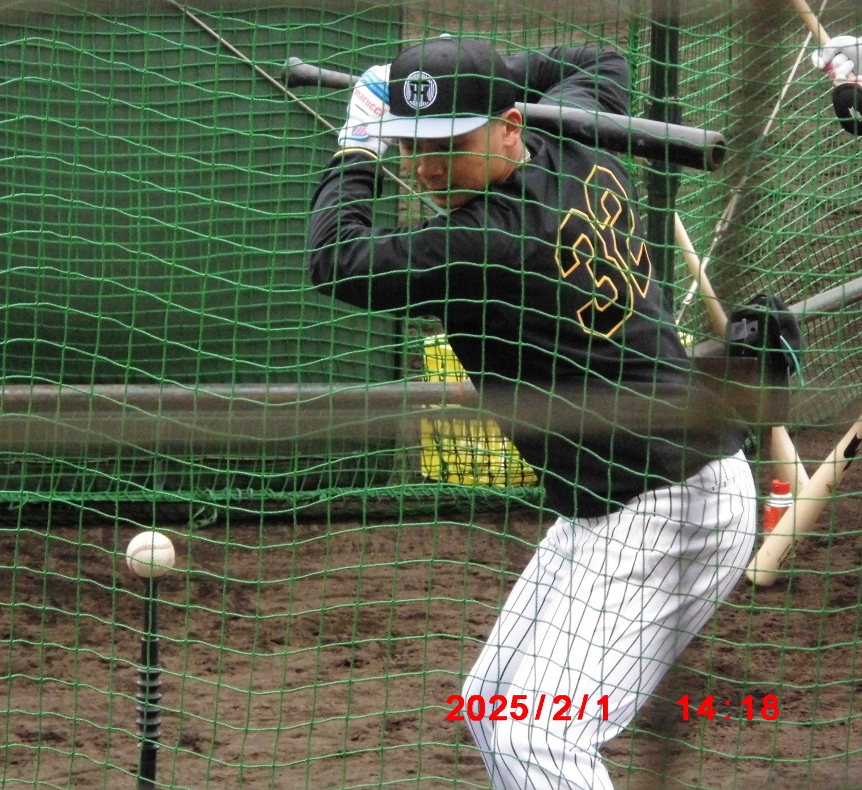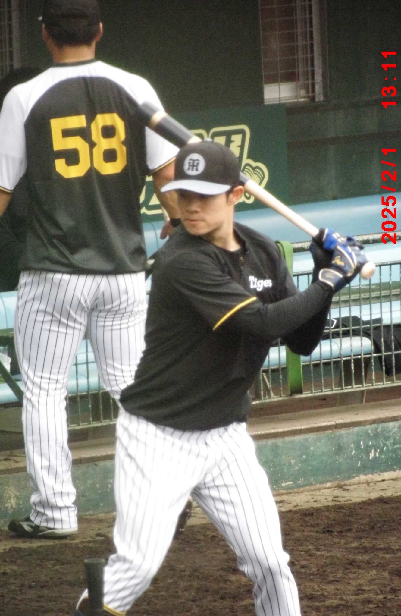 梅ちゃんと畠選手          居残り練習にひょっこり登場、球児監督