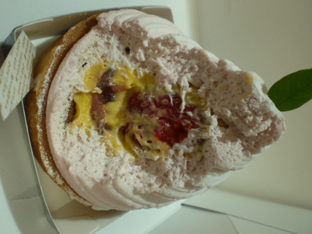 中は桜ゼリーとカスタード、いちごが入っていました。