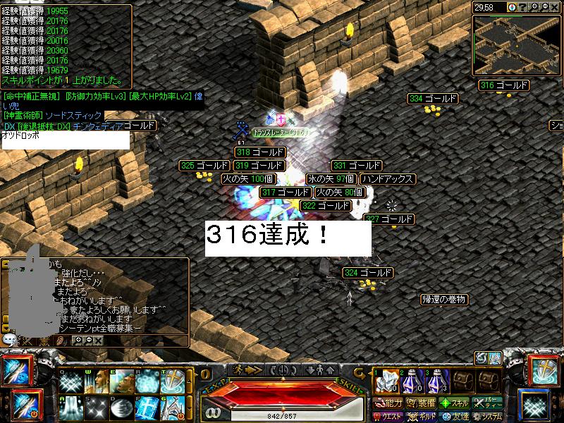 自分を自分で祝ってるのが痛いとか言わないでおはようございます!変態です!記念すべきこの瞬間が!これだ!乙ドロップは無視おね316を迎えました。いままで育てた中でイチバン高かったのが死んだ315のシフだったので、このBISが一番高いということになります!ここまでこれたのは秘密であり、友達であり、ギルドであり、ダメオン神オンであったりしてとてもうれしいです。これからも秘密に寄生はいってlvを上げていきたいと思います。でもねやっぱり運素で0のBISじゃ稼げない!今日は鍛冶屋で7mもらったけど3lv分ね!ムリだろwまぁ新キャラとか絶対飽きるのでたぶんやれないと思いますね!TUでモリネルで狩れることを夢みて1.30分で1lvあがる塔地下で頑張ります。紅鯖でどういったことで上がったかしょぼい書いておこうと思います!ギルドも追加しておきます!1~55ミルベルで稼ぎ55~60赤目秘密60~100バベルエルフ、黒エルフ、2騎士、廃坑秘密100~130ひたすらコロ!130~150神殿B2,ドナツ寄生150~160レイス160~210バブル、呪いB2、塩秘密210~260小基秘密、赤目倉庫(235まで)260~290蟹秘密290~315塔秘密 スウェブ9F,10Fソロ、塔B3ソロで、ギルドは60~100通称ツチノコ?正式名称忘れた100~180ねこなべ180~250? THE_END240?~260?向日葵ふ260?~280? Scarlt☆Sea 280??~313 夢想連心313~現在 colorあいまいでさーせんまぁ振り返ってみると100~200ぐらいは一週間で上がったかな?滝とレイス秘密は一回も行ってません、だって入りにくかったしPTで狩ってたほうが早い235からはソロする場所もないし厨シフさんが居たので赤目倉庫は235で行かなくなりました。それでずっと友達のポタ寄生して290まで秘密のみそしてソロができるようになったから秘密orソロって形かなギルドのほうはENDが一番ながかったかな他はノーコメントであ、ノシ追記BISがColor様にお世話になることになりました。フェネ火曜待ってろよ