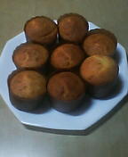 ケーキのもと150グラムくらいに、マーガリン30グラムくらい・砂糖40グラムくらい・卵2個・牛乳大きなスプーン3杯くらい、を混ぜ合わせたものをカップに入れ、180度くらいのオーブンに入れて20分くらい焼いただけ。