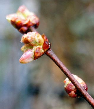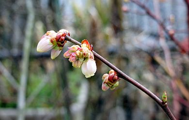 ブルーベリーの白いツボミが顔を出し始めました。